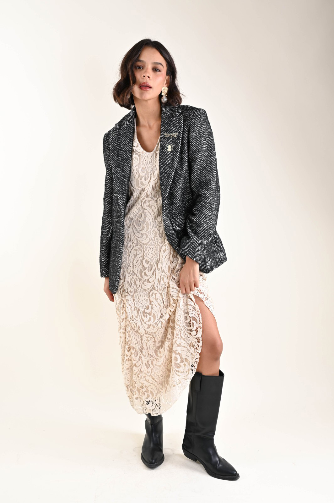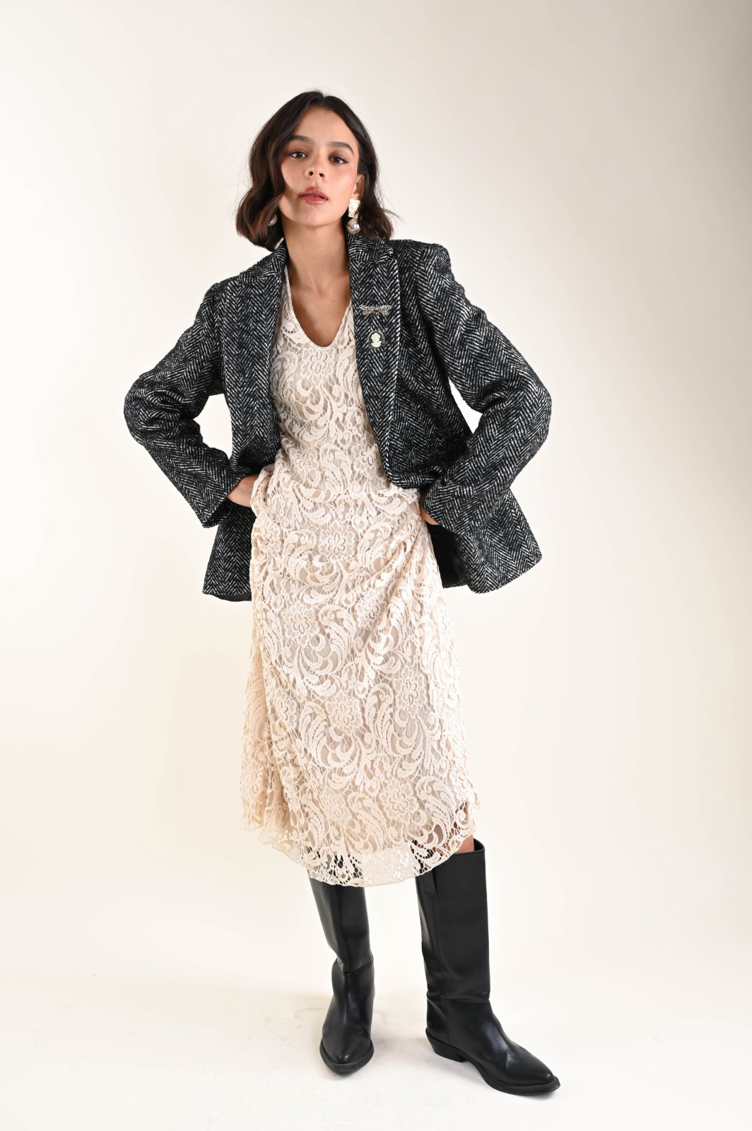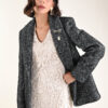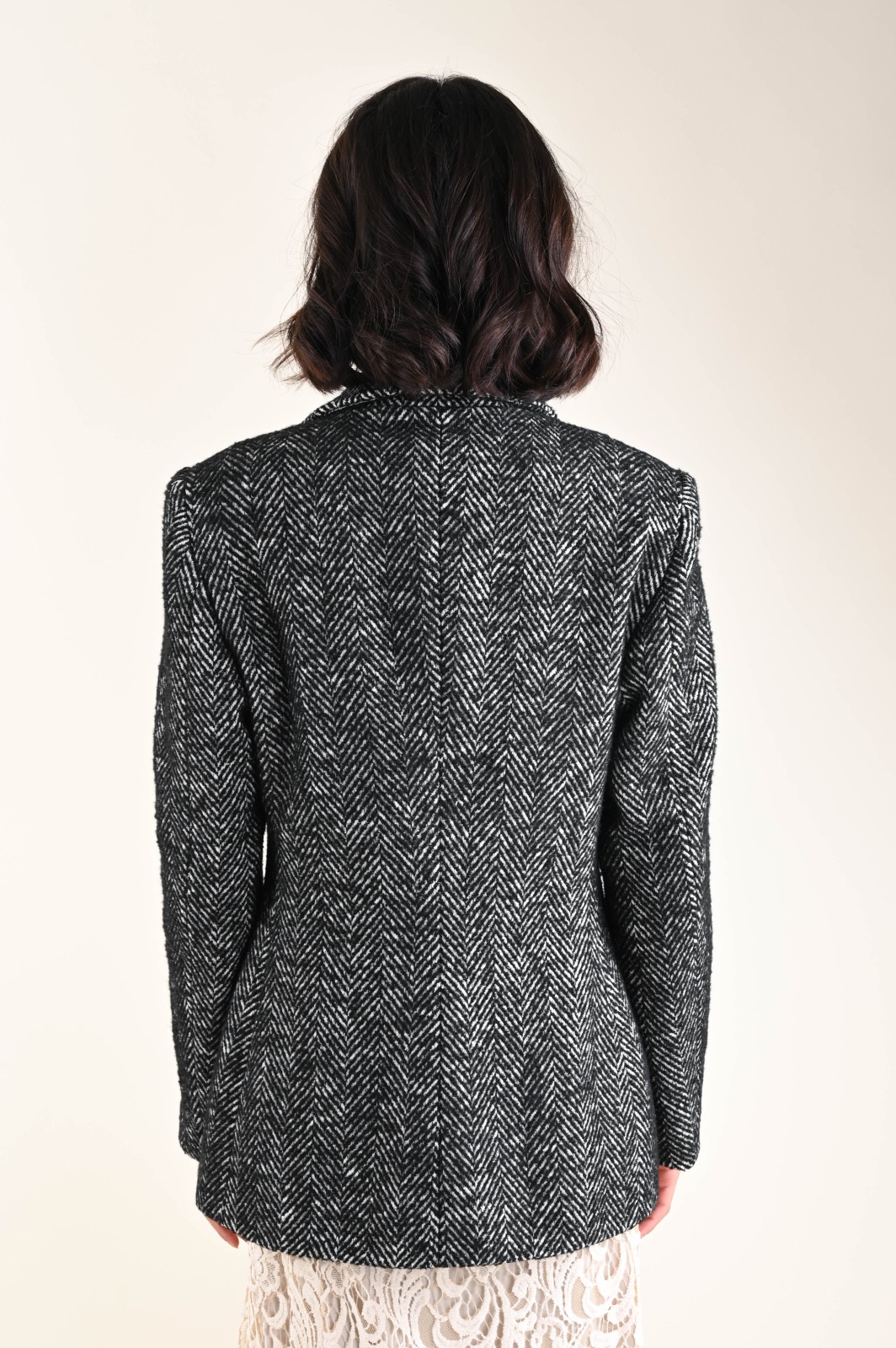 The Myastreet herringbone fabric blazer is an iconic piece that combines refinement and character. Crafted with an elegant texture and attention to detail, it features a feminine, structured silhouette that enhances the figure. Perfect to pair with its matching trousers or with casual pieces for a contemporary, on-trend look.