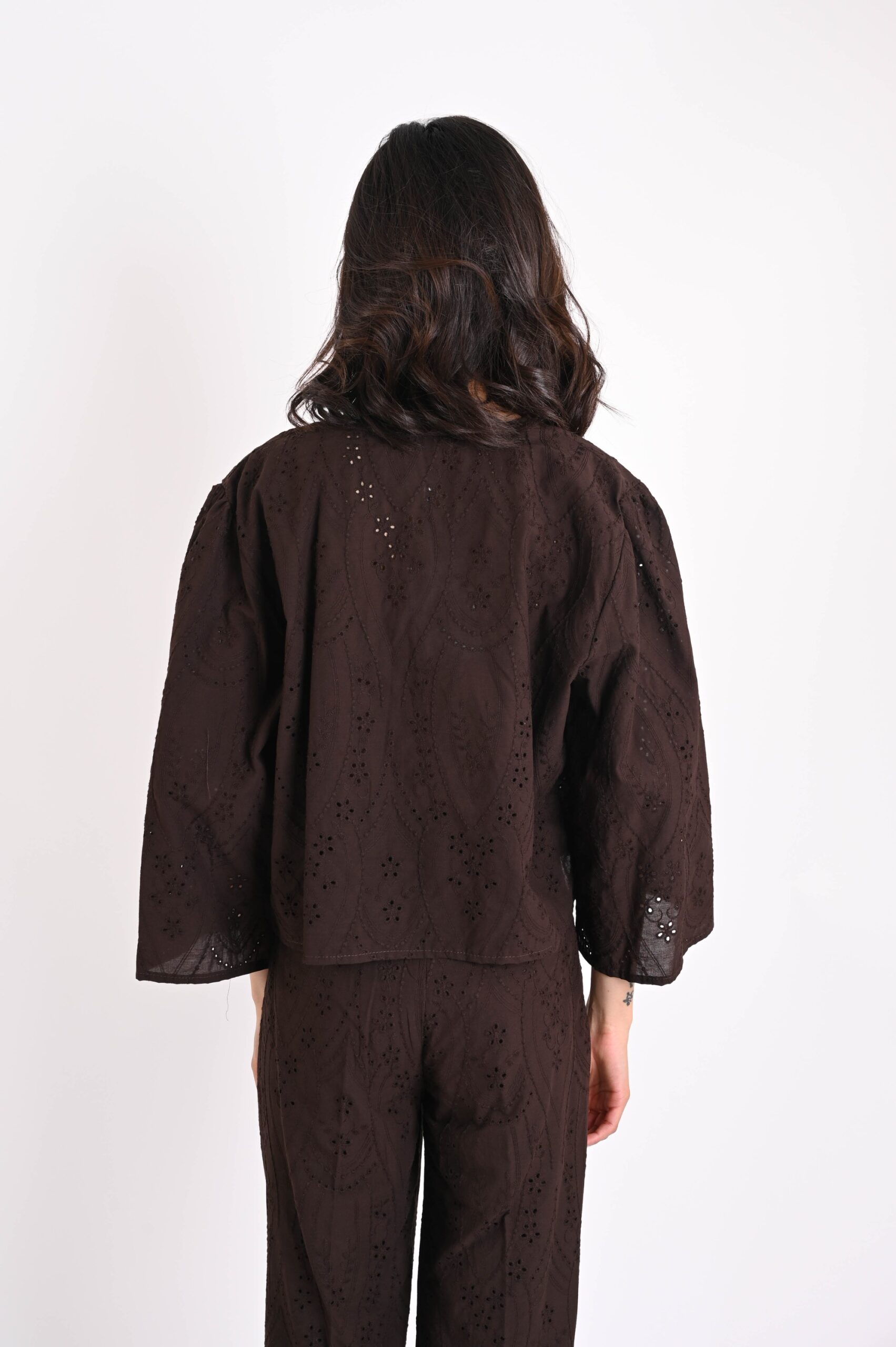 Embrace lightness and elegance with this broderie anglaise shirt featuring front ties, a perfect piece for the summer season. Crafted from high-quality cotton broderie anglaise, it offers comfort, freshness, and breathability, ideal for warm days.
