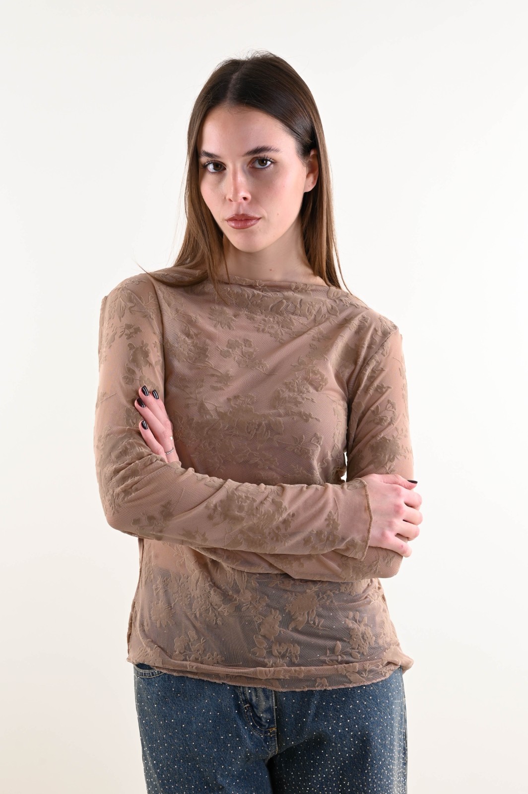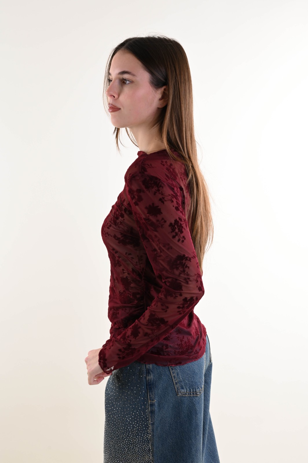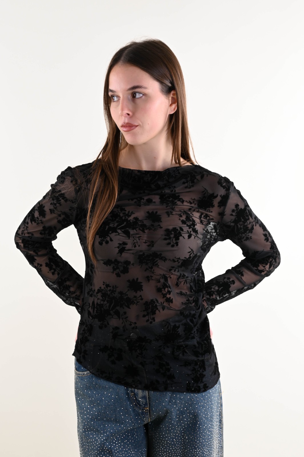 JACQUARD TULLE TOP WITH SIDE DRAPING