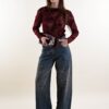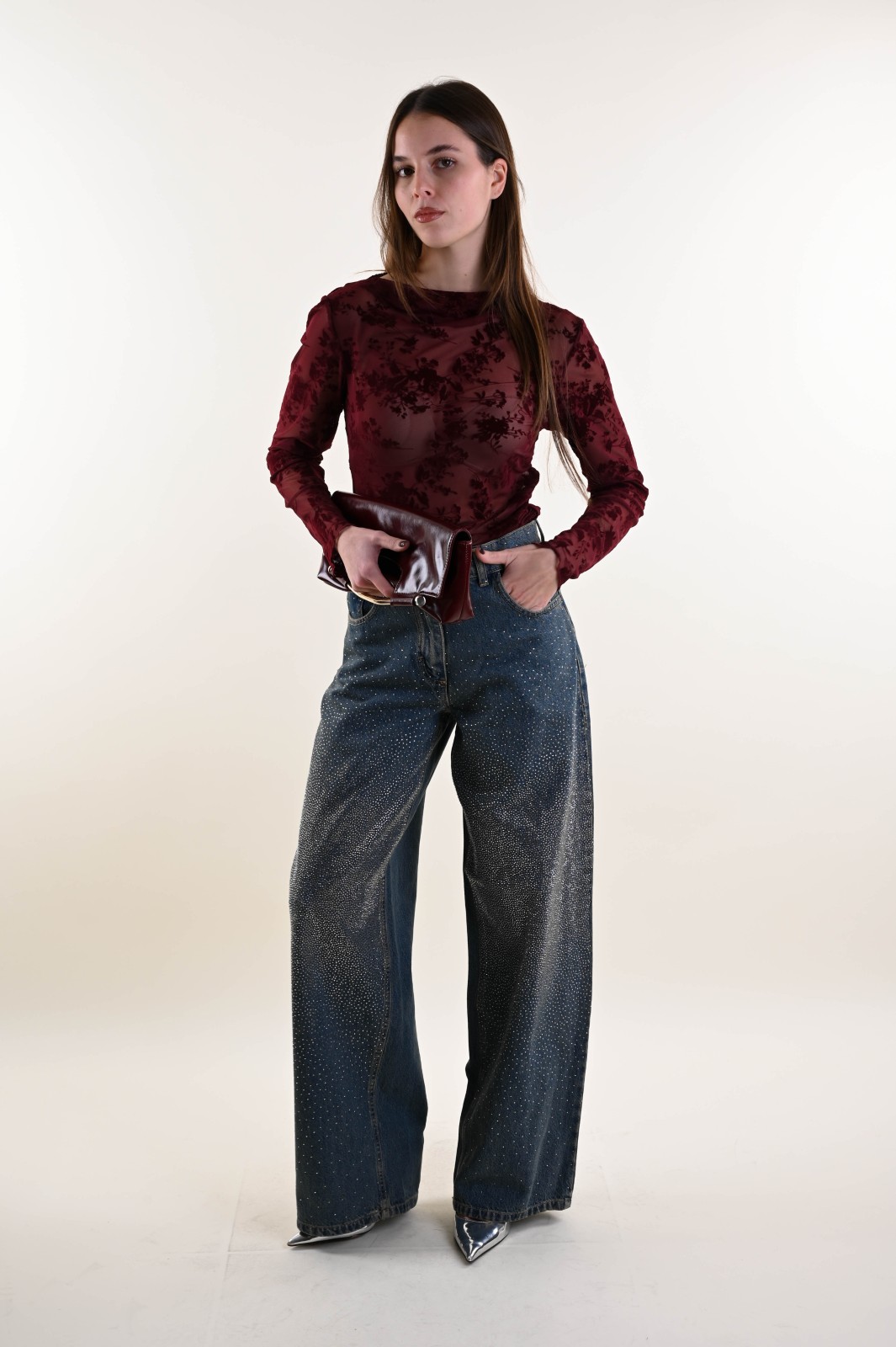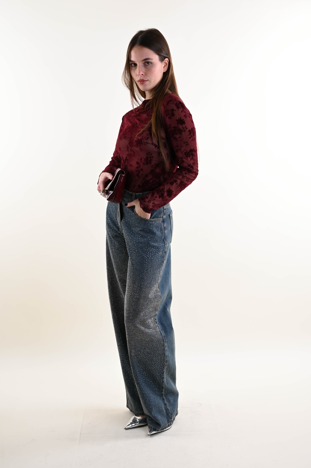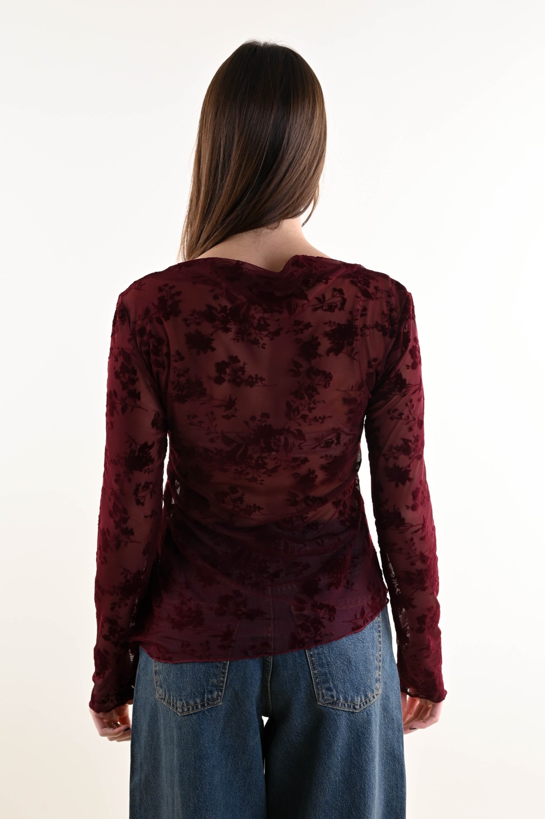 JACQUARD TULLE TOP WITH SIDE DRAPING