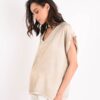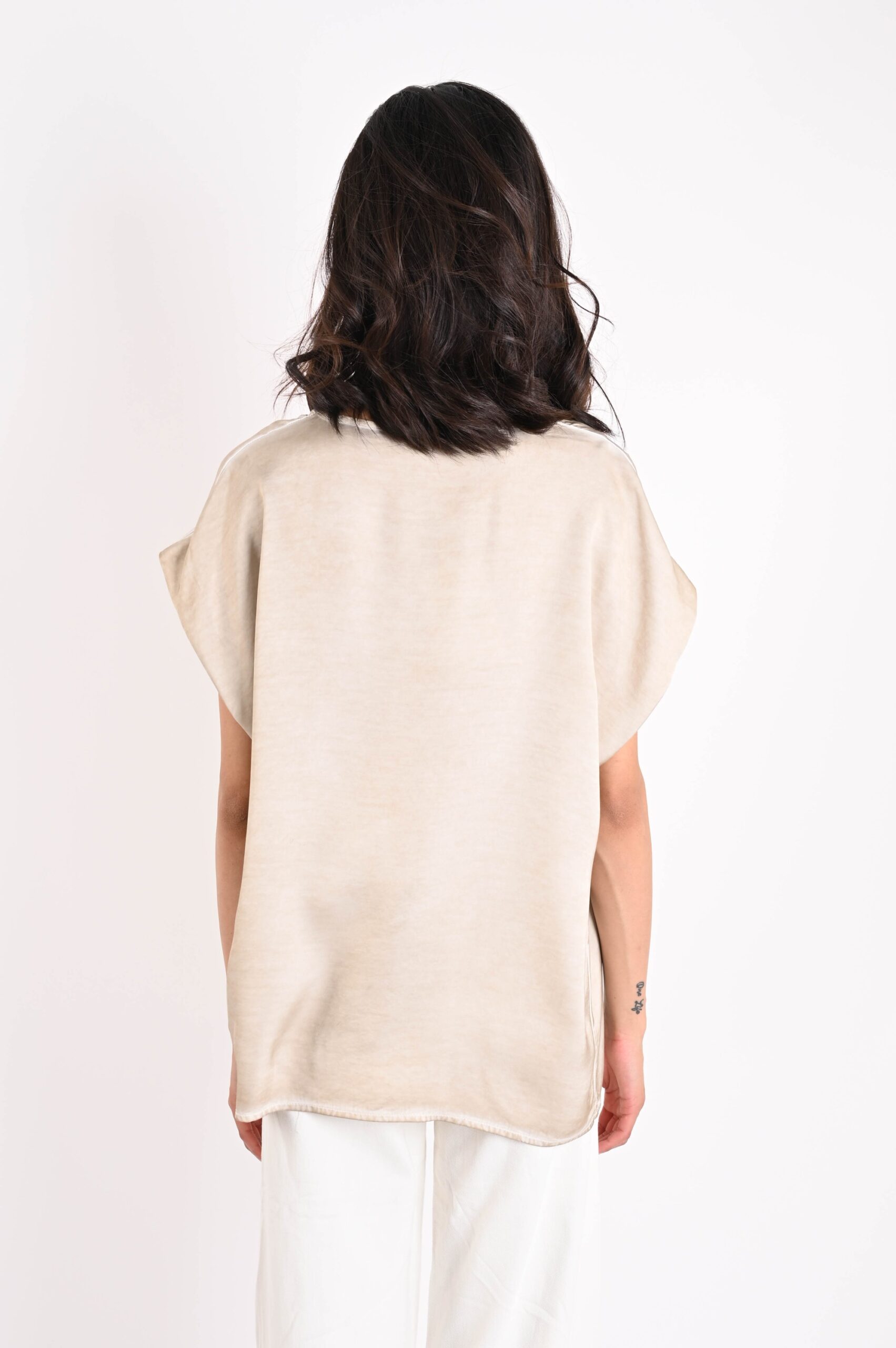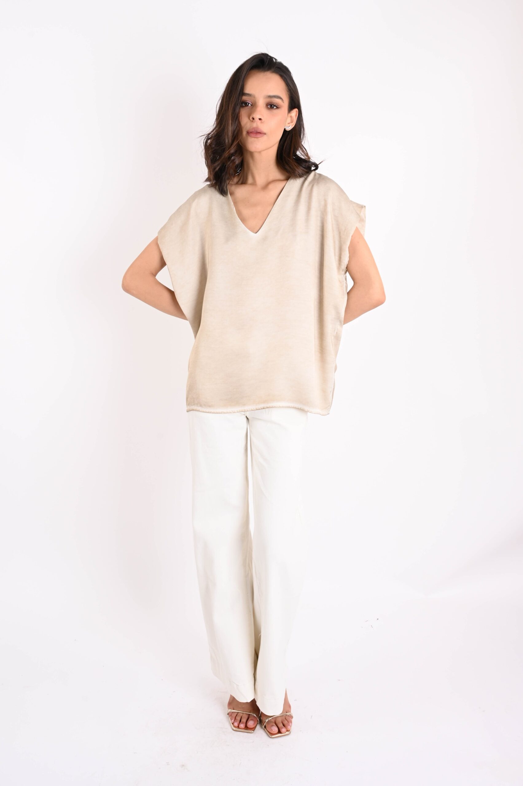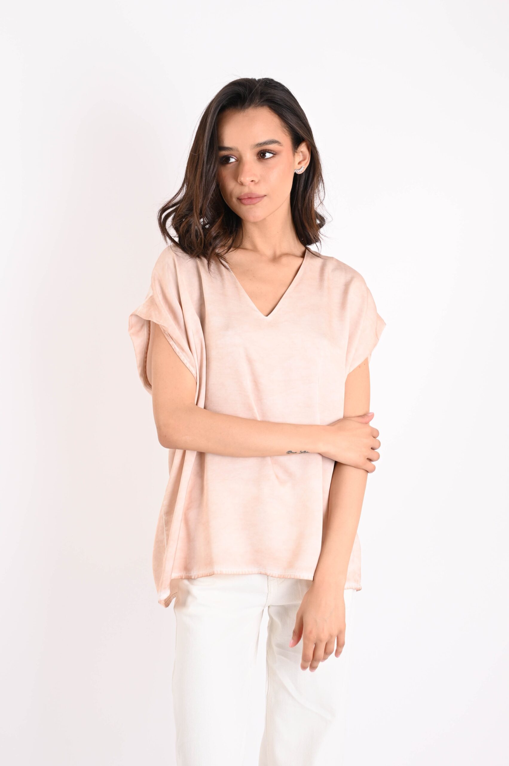 Discover the contemporary style of the cold-dyed V-neck blouse, a unique piece perfect for elevating your summer wardrobe. Crafted with a cold-dye treatment, this blouse stands out for its distinctive color effect, adding depth and character to the fabric.