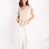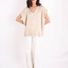 The V-neckline enhances the silhouette with a touch of elegance, while the fluid fit ensures comfort and ease of movement. Ideal for casual chic looks, it pairs effortlessly with pants, skirts, or denim, making it suitable for various occasions, from everyday wear to leisure time.