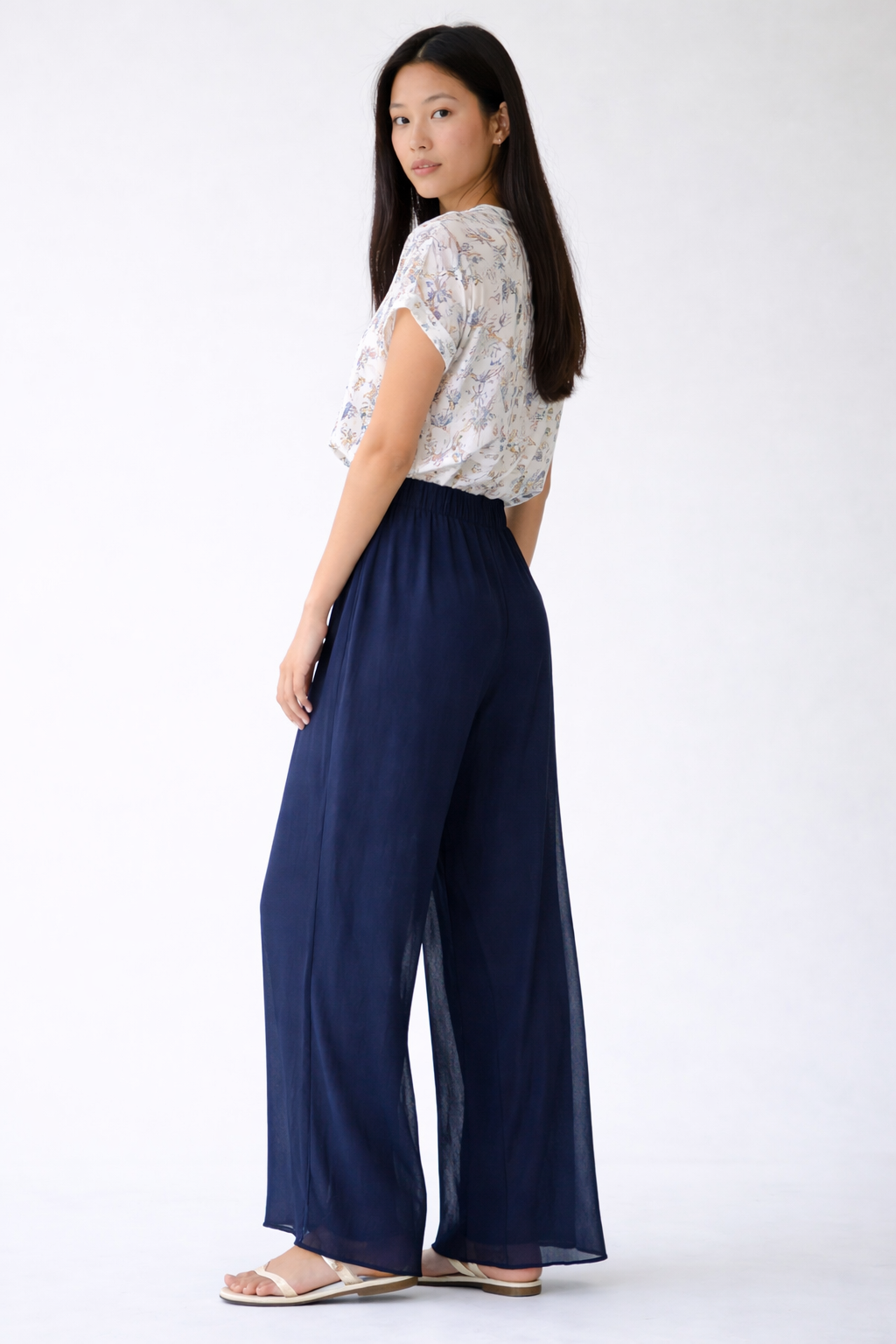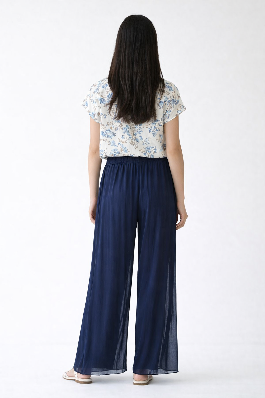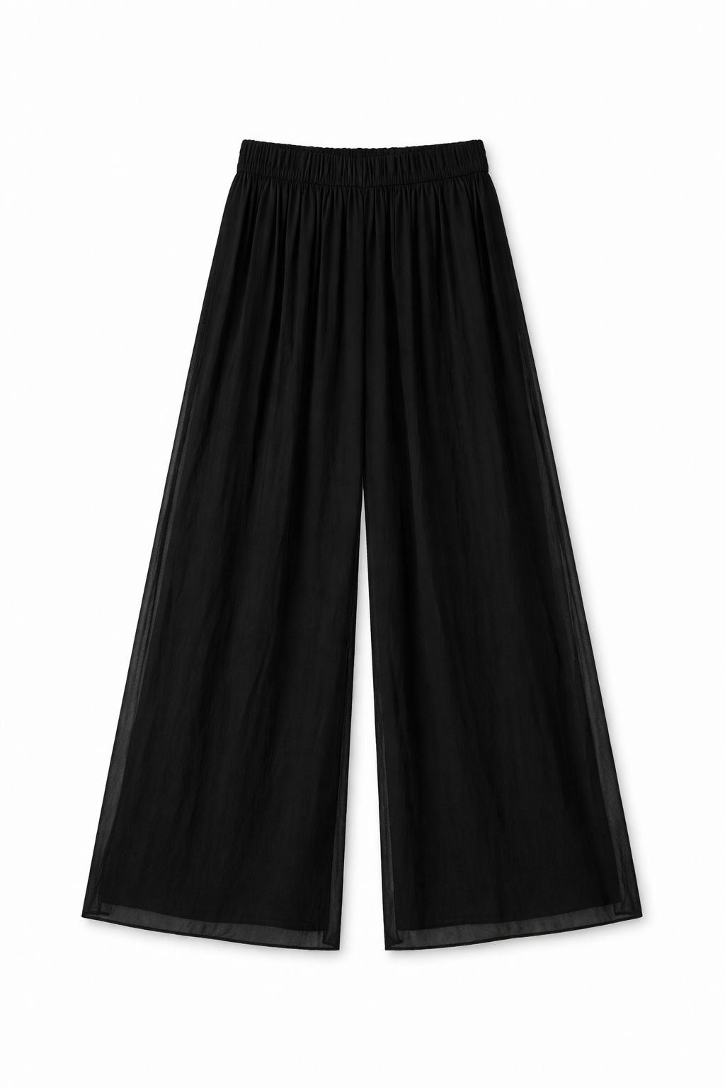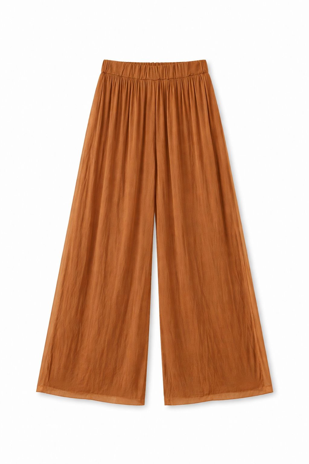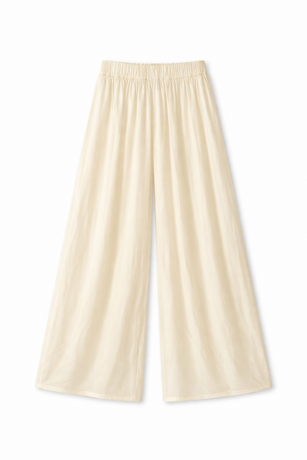 Wide-leg silk-blend trousers designed to combine elegance and comfort. The fluid silhouette enhances movement, creating a sophisticated and contemporary look.