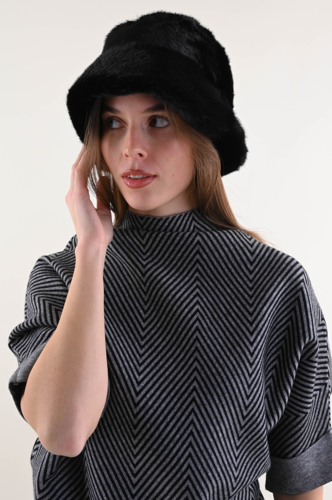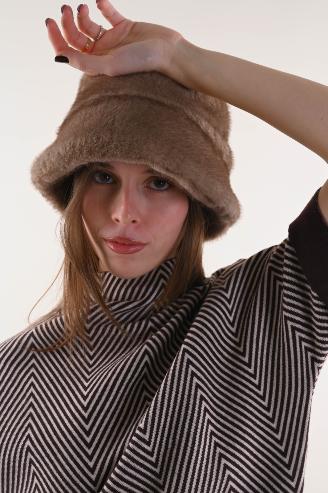 Faux-fur bucket hat with a soft and enveloping design, perfect for completing both casual and sophisticated looks. Made from a plush, fur-effect material, it instantly adds a touch of character to any outfit. Its flexible structure ensures a comfortable fit and excellent protection on colder days. A versatile accessory, ideal for stores looking for trendy, easy-to-match pieces for the winter season.