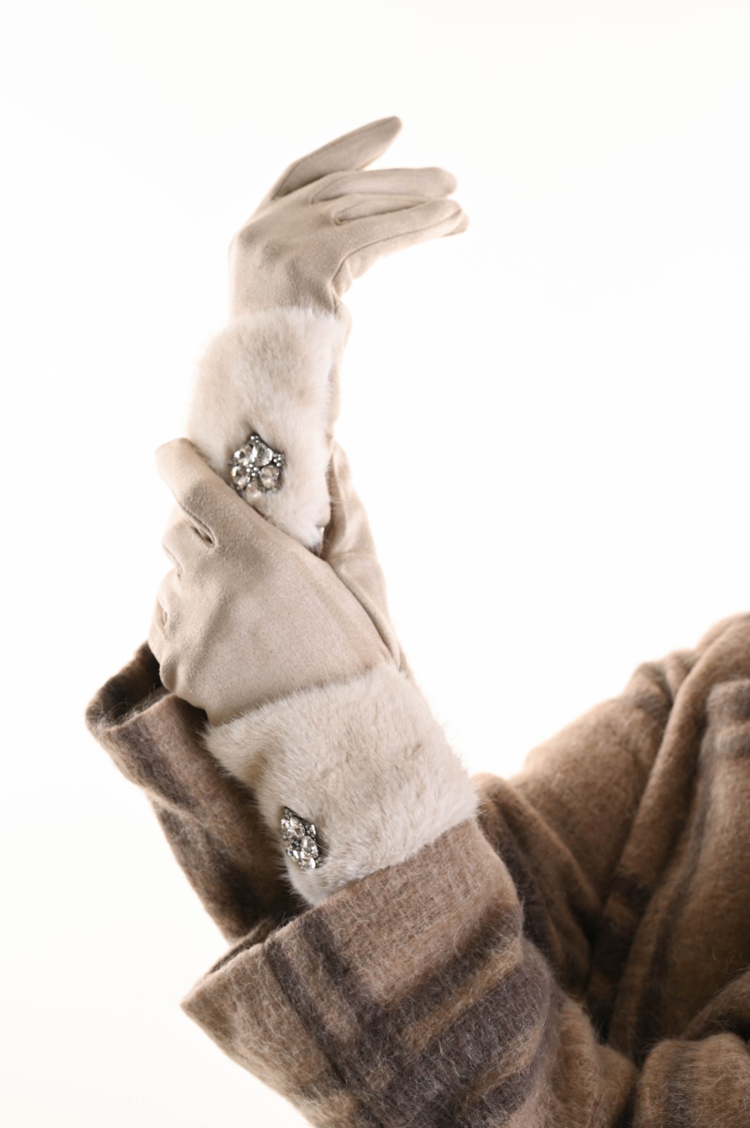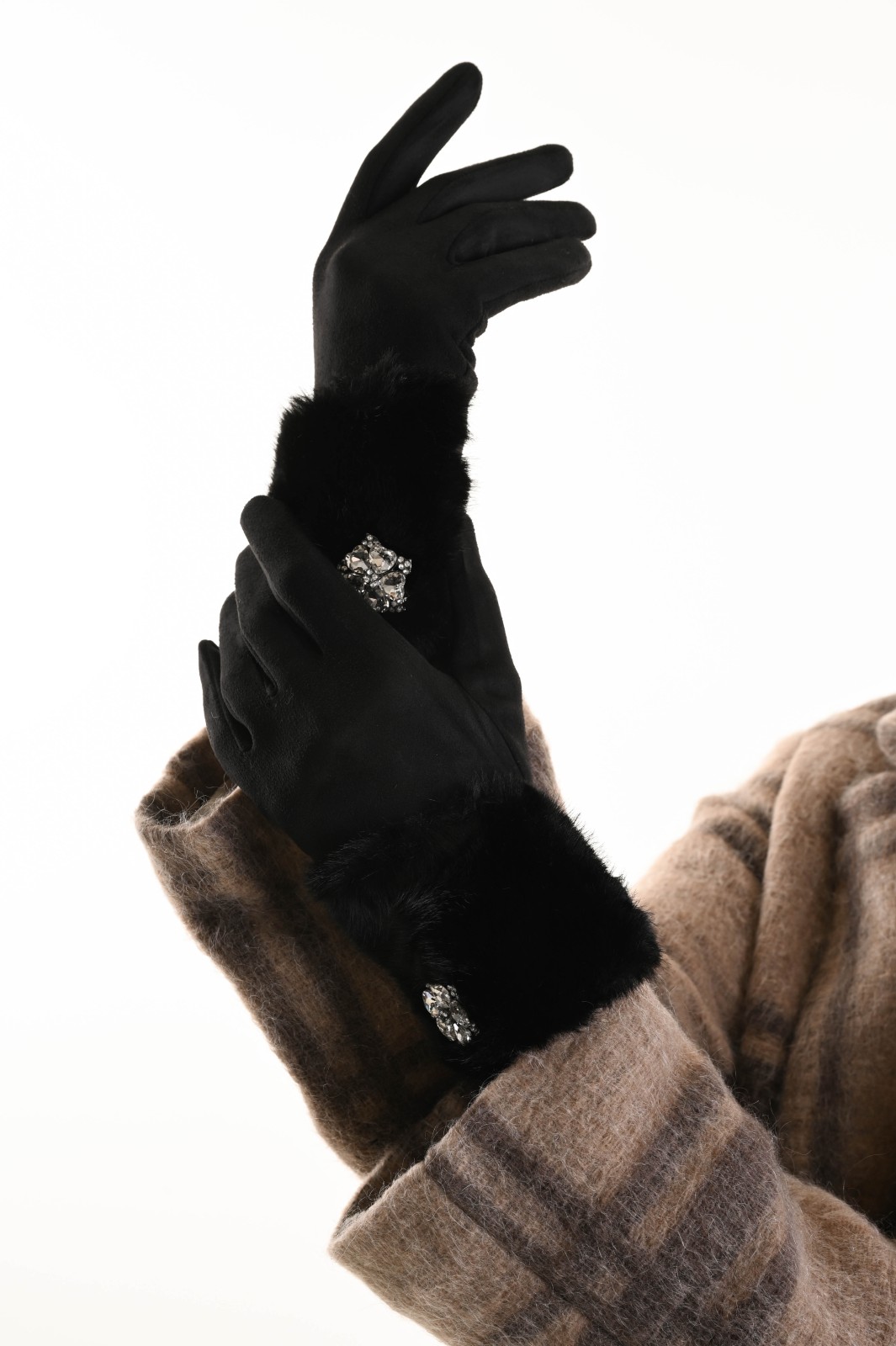 FAUX FUR GLOVES WITH JEWEL DETAIL