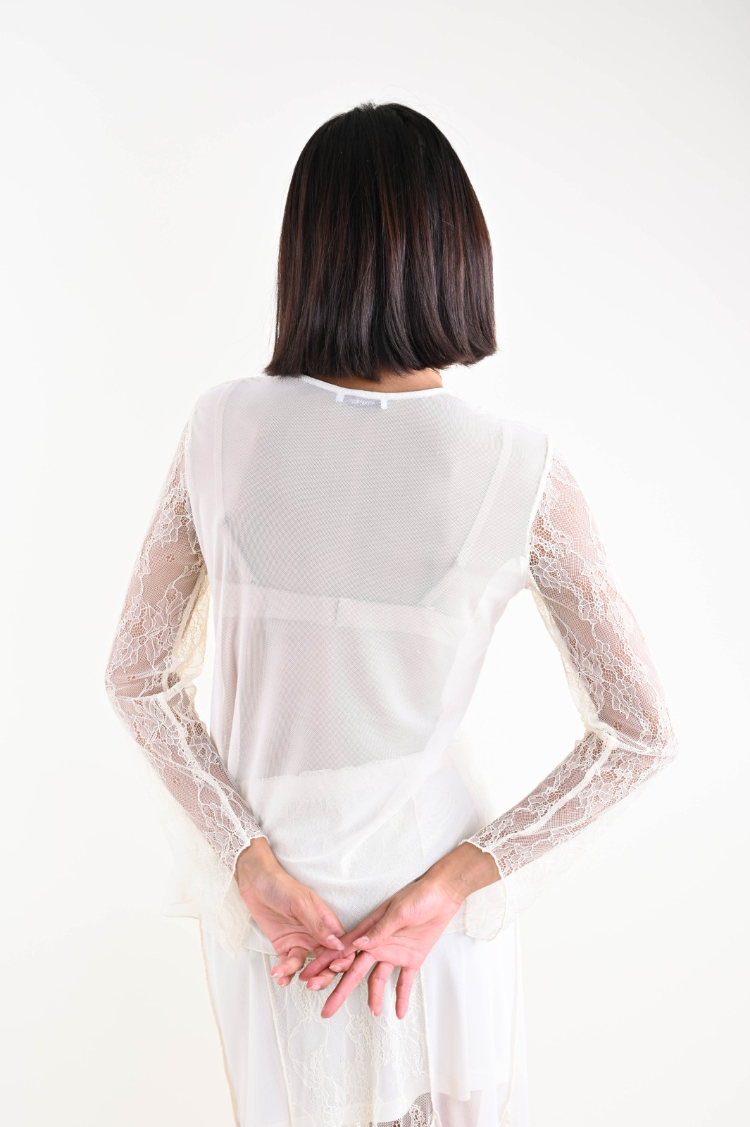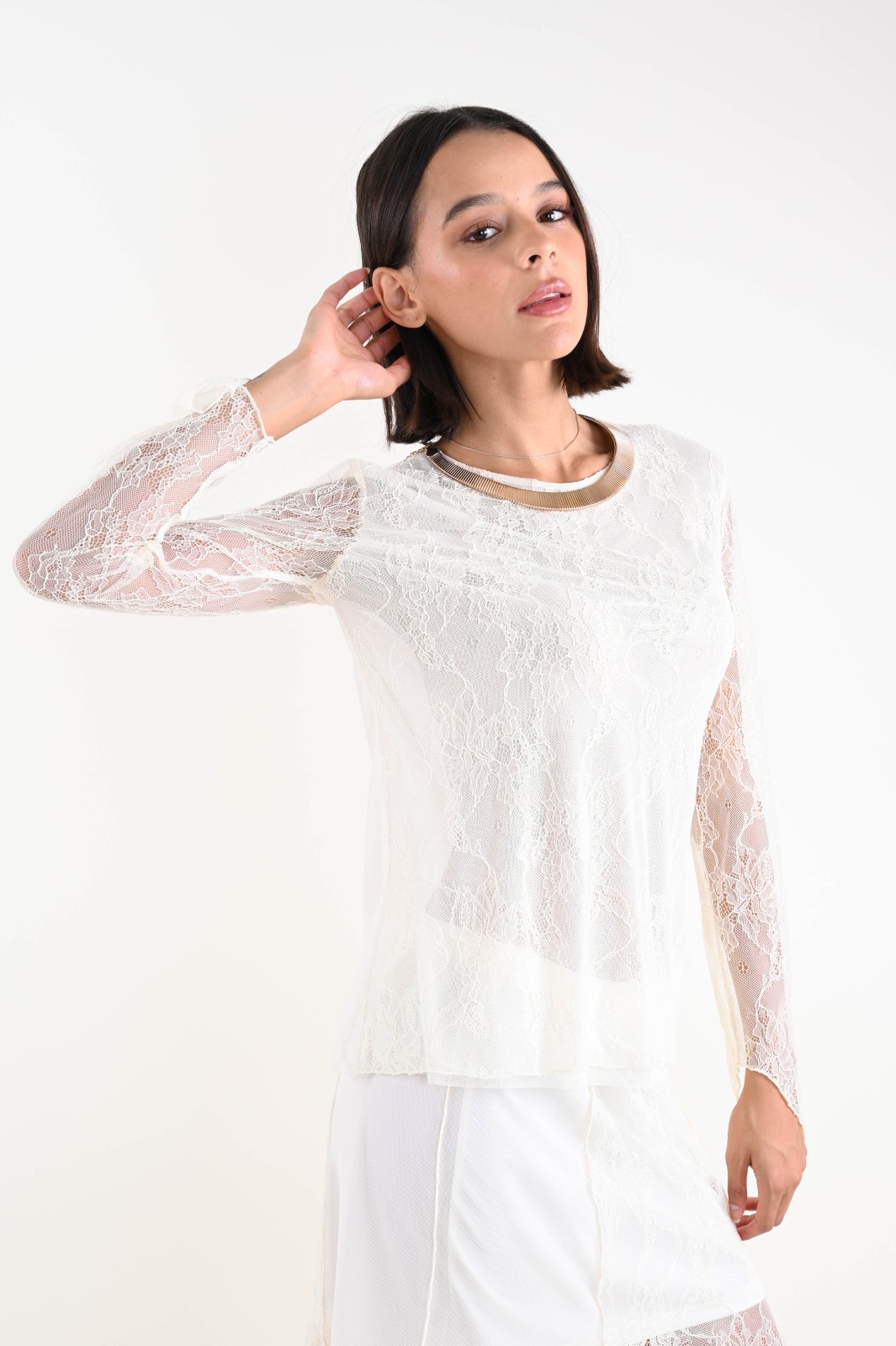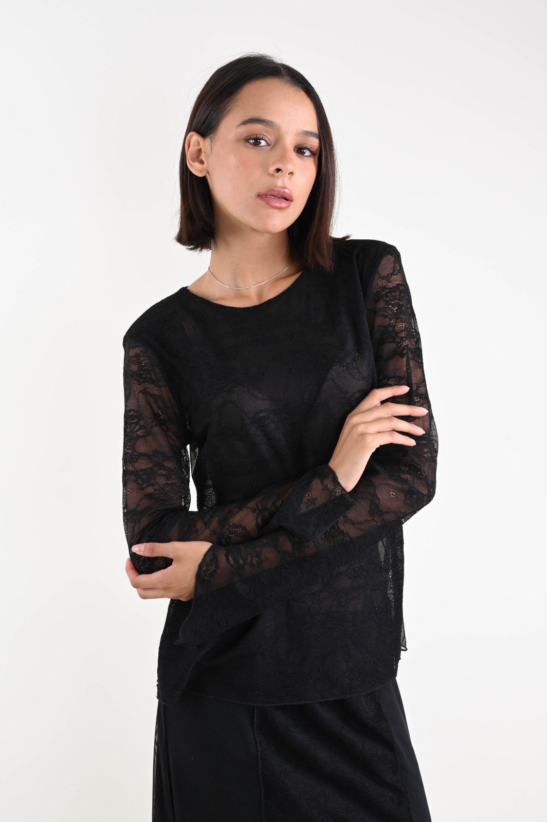 Women’s long-sleeve lace top, an elegant and feminine piece that adds a refined touch to any outfit. The lace design enhances the silhouette with delicate transparencies, making it perfect for evening looks and special occasions. Easy to pair with skirts or tailored trousers, but also with jeans for a casual-chic contrast. Made from lightweight, comfortable fabric, it’s the ideal choice for those who love to stand out with a sophisticated and timeless style.
