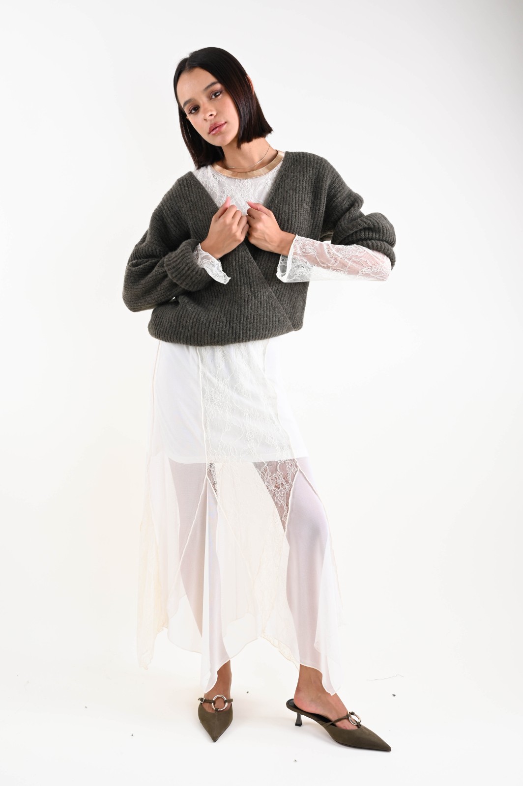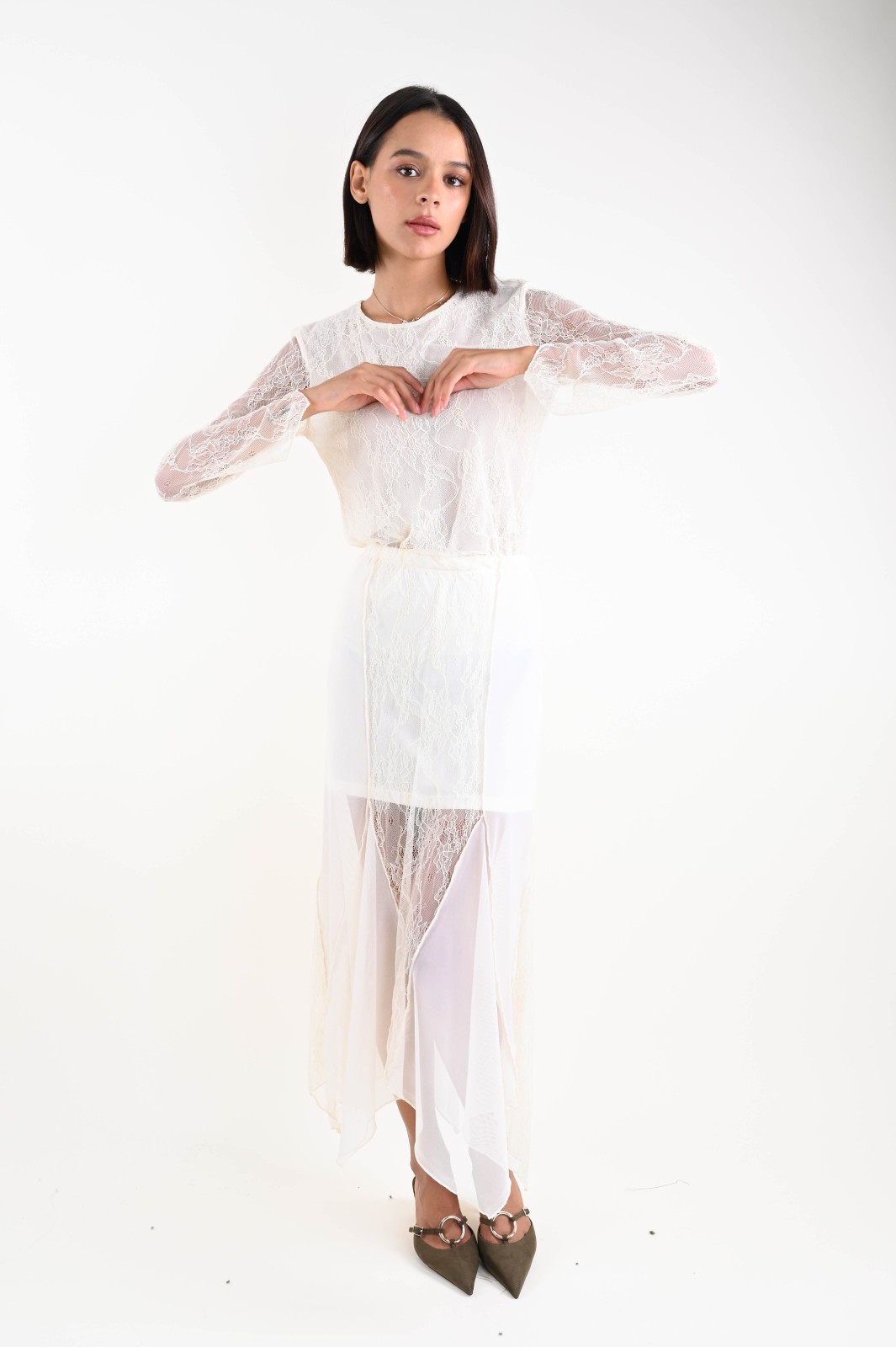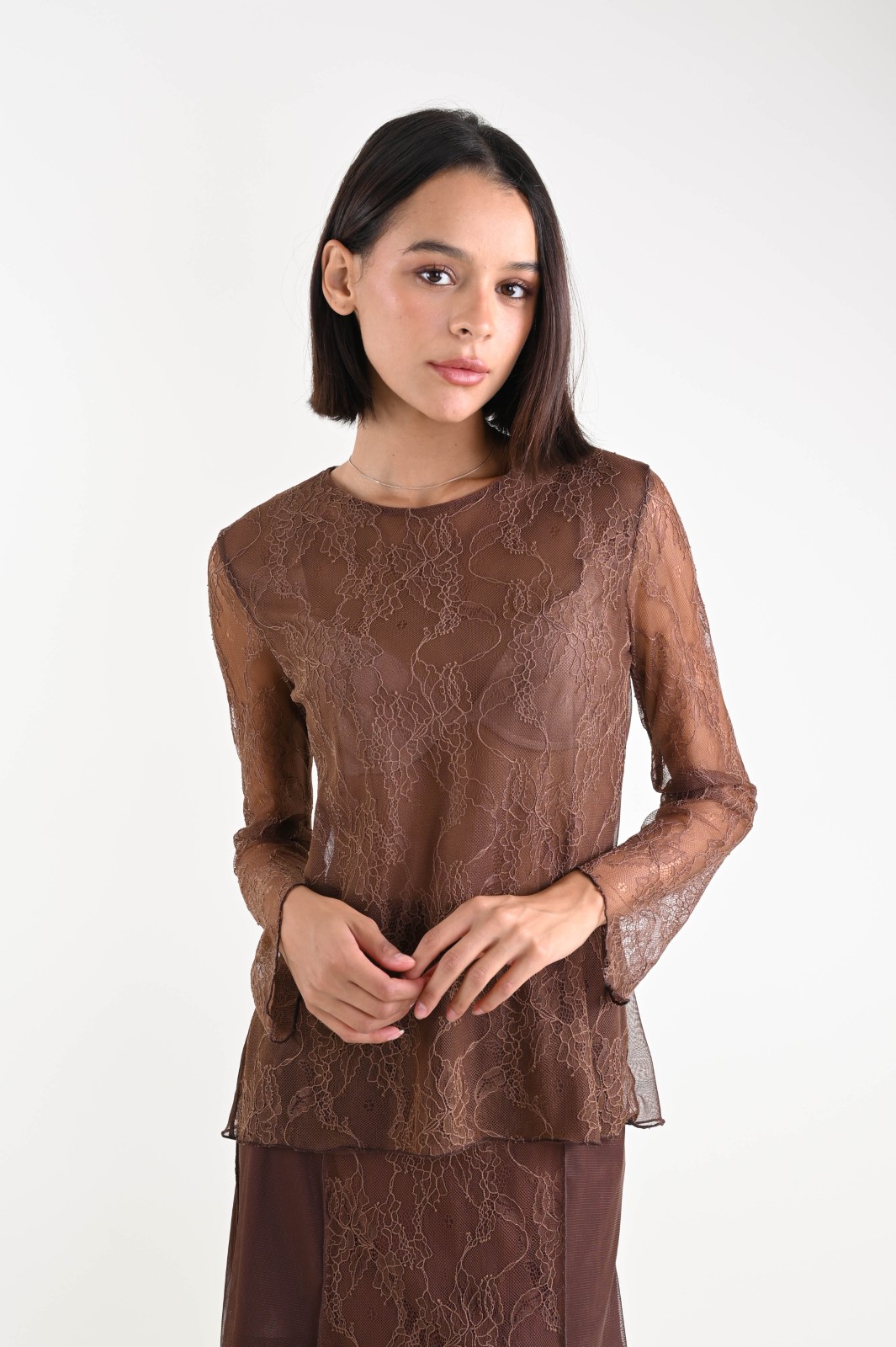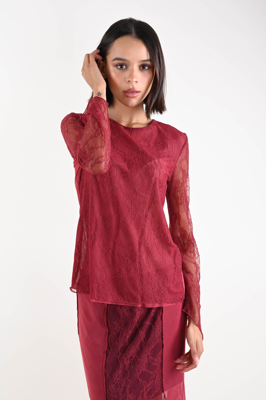 Women’s long-sleeve lace top, an elegant and feminine piece that adds a refined touch to any outfit. The lace design enhances the silhouette with delicate transparencies, making it perfect for evening looks and special occasions. Easy to pair with skirts or tailored trousers, but also with jeans for a casual-chic contrast. Made from lightweight, comfortable fabric, it’s the ideal choice for those who love to stand out with a sophisticated and timeless style.