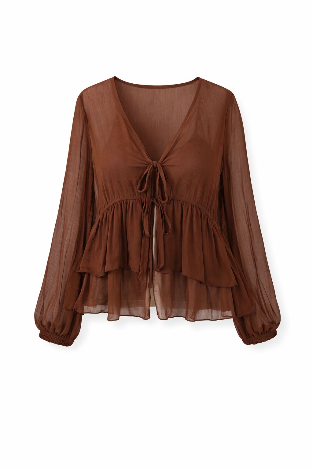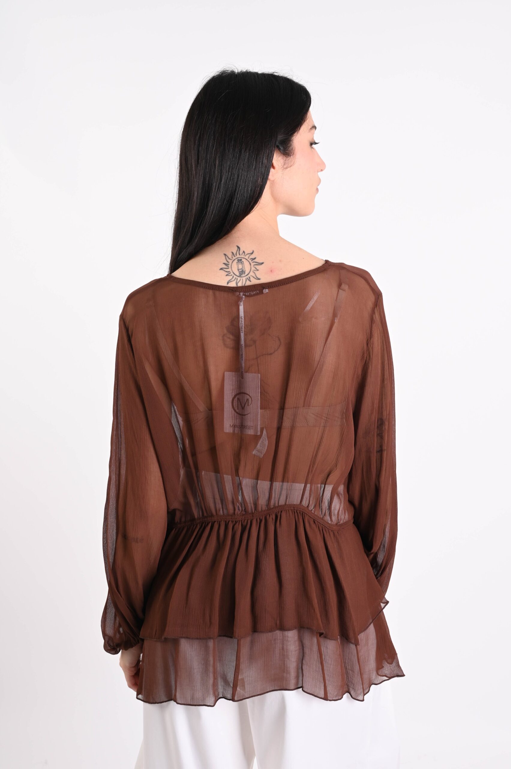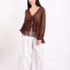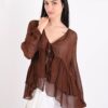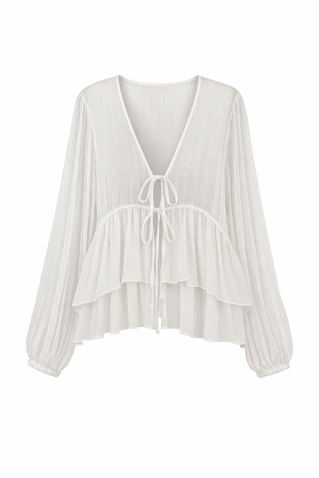 Shirt with front tie details, a feminine and contemporary piece perfect for the spring-summer season. The tie-front design adds a distinctive and dynamic touch, enhancing the silhouette with elegance. Its versatile style makes it ideal for creating modern outfits, from everyday looks to more refined ensembles. A trend-forward option for retailers looking to offer refined and timeless pieces.