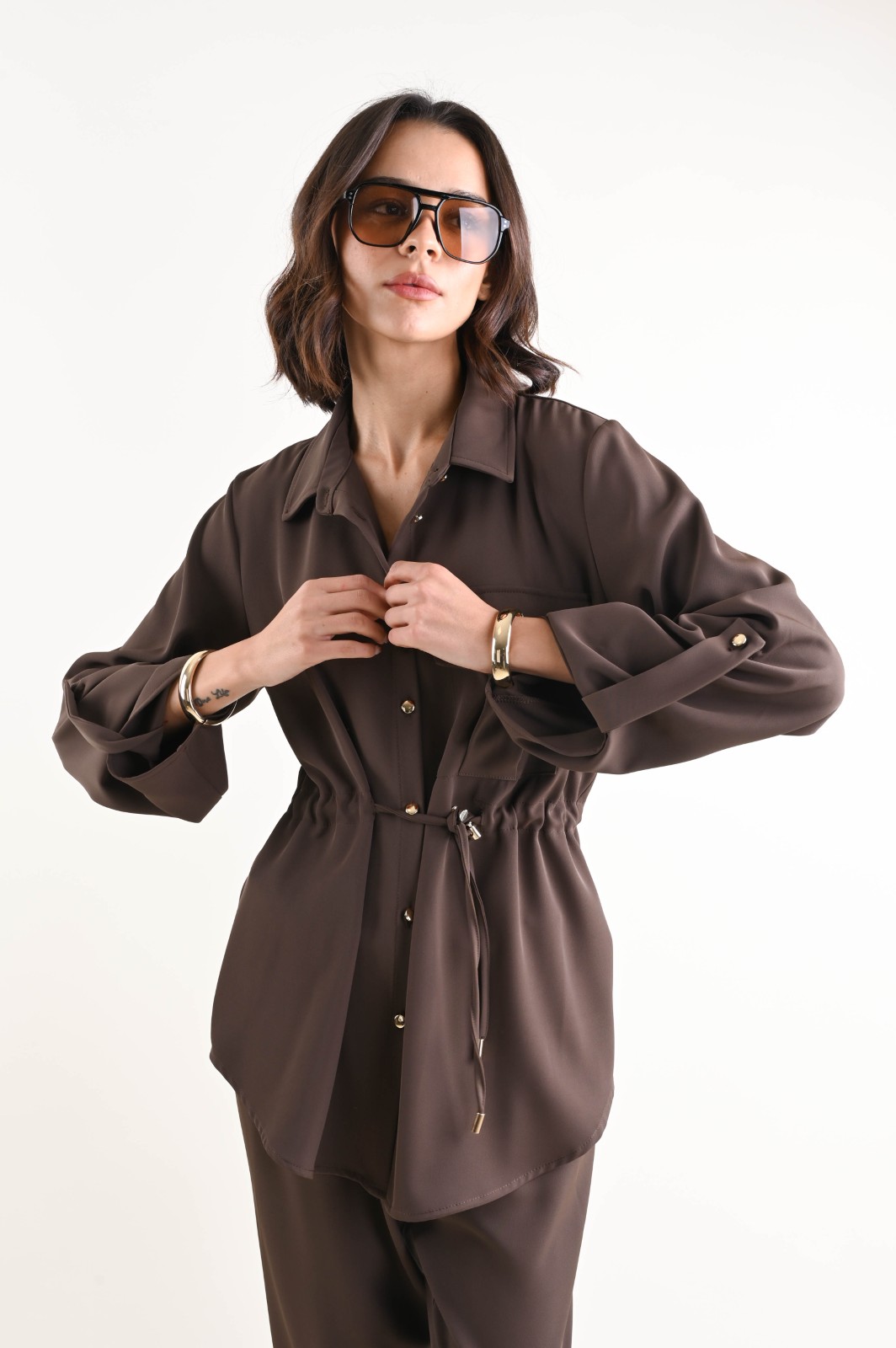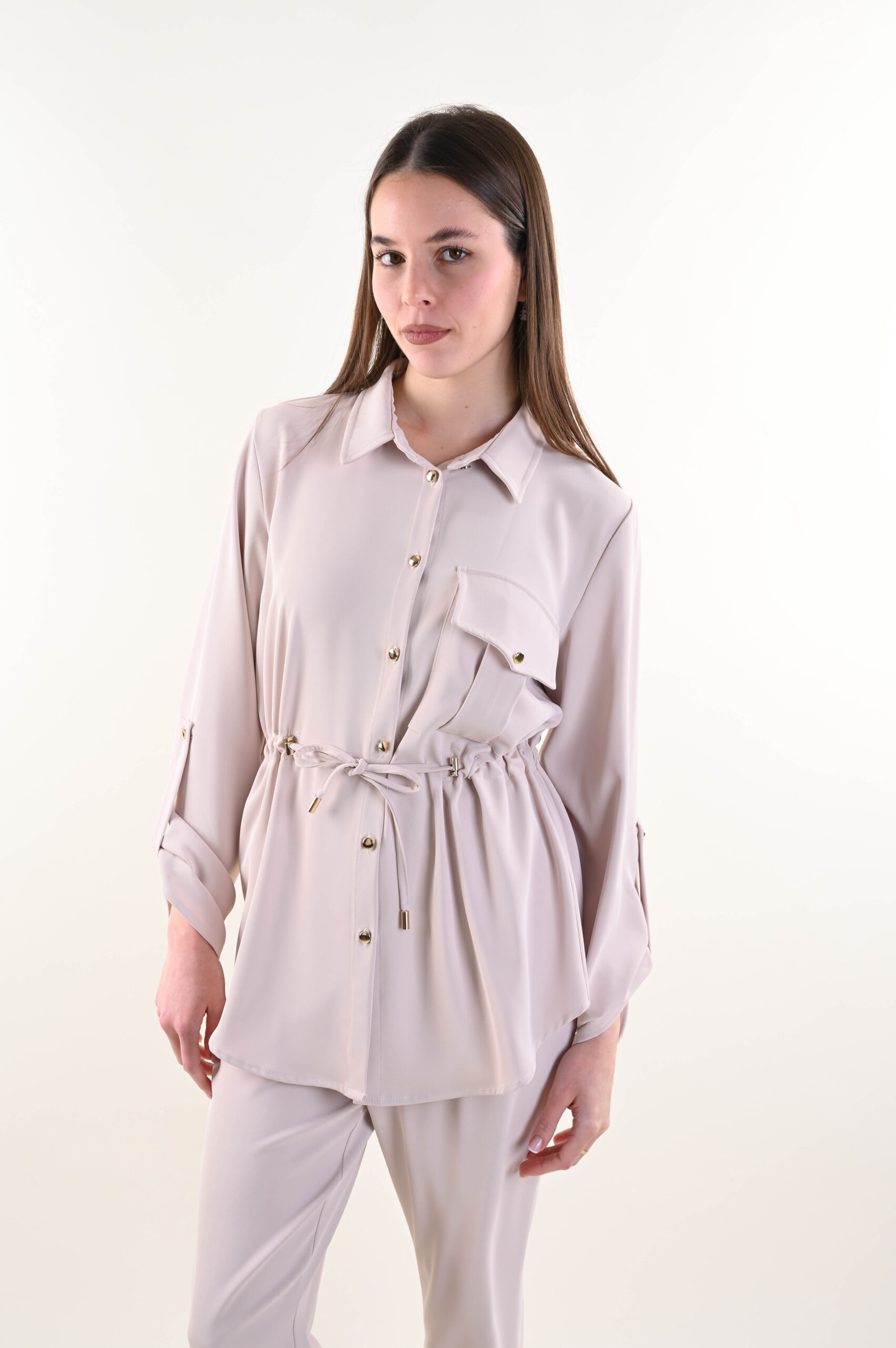 SHIRT WITH DRAWSTRING WAIST AND CHEST POCKET