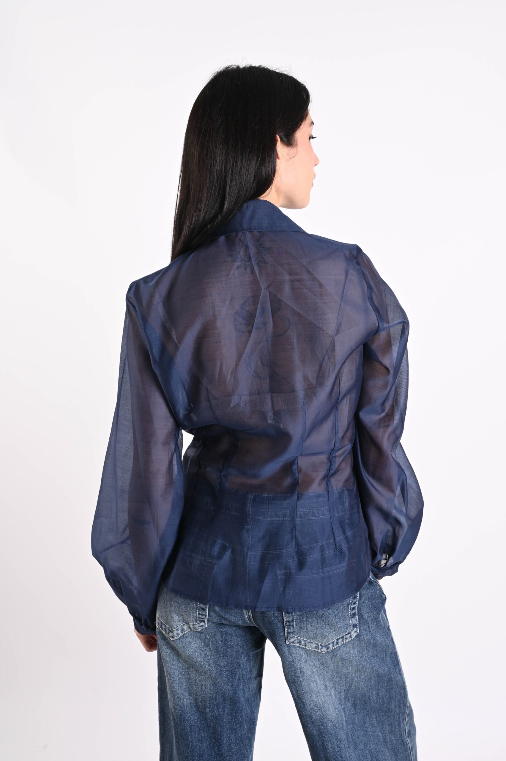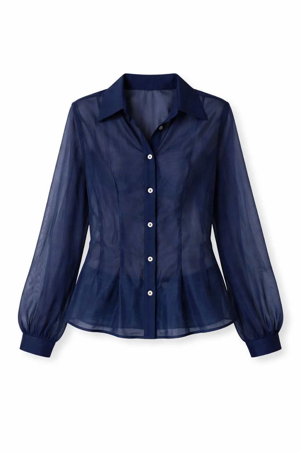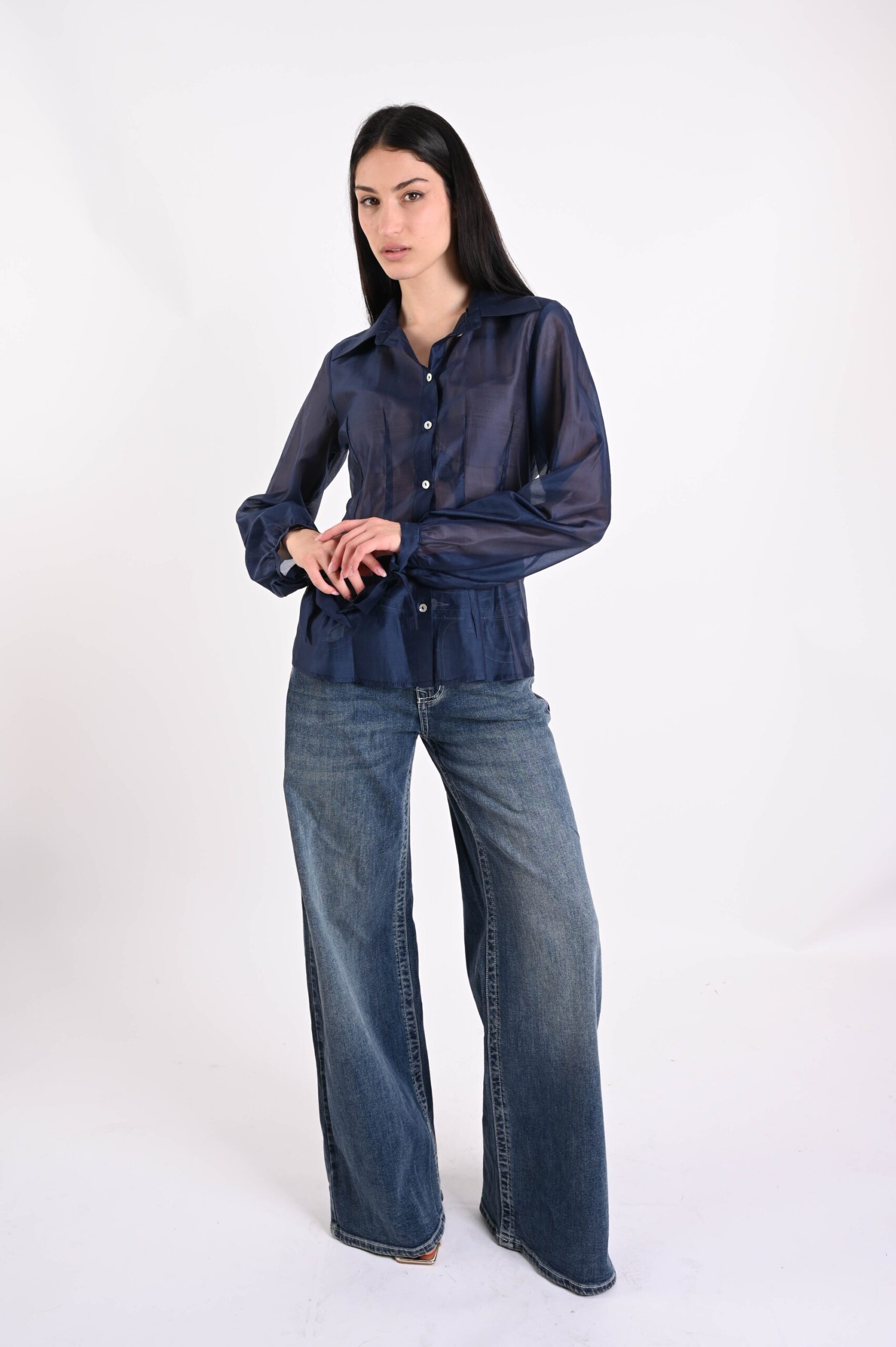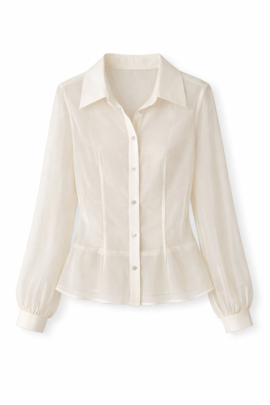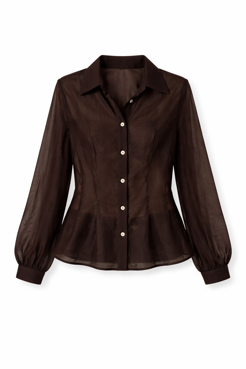 Fitted shirt in semi-sheer fabric featuring pleated detailing and a classic collar, a refined piece with a feminine and contemporary design. The silhouette enhances the figure, while the lightweight fabric adds elegance and movement. The classic collar brings a structured touch, making it ideal for versatile outfits, from everyday wear to more polished occasions. A distinctive option for retailers looking for sophisticated and trend-driven styles.