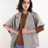 The slightly oversized silhouette and short sleeves give the garment a fresh, modern character, while the double-breasted closure enhances the figure with balanced proportions. The check pattern adds a refined, on-trend touch, allowing the jacket to be easily styled with trousers, tops, and knitwear. Perfect for daytime outfits, professional settings, or casual-chic looks.