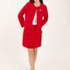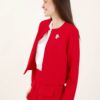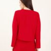 Short bouclé jacket without buttons and collar.
