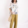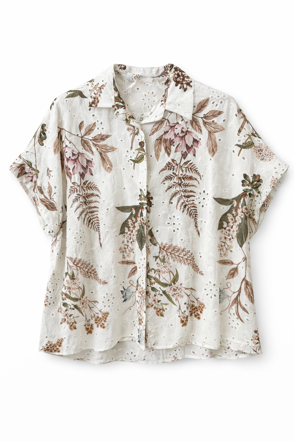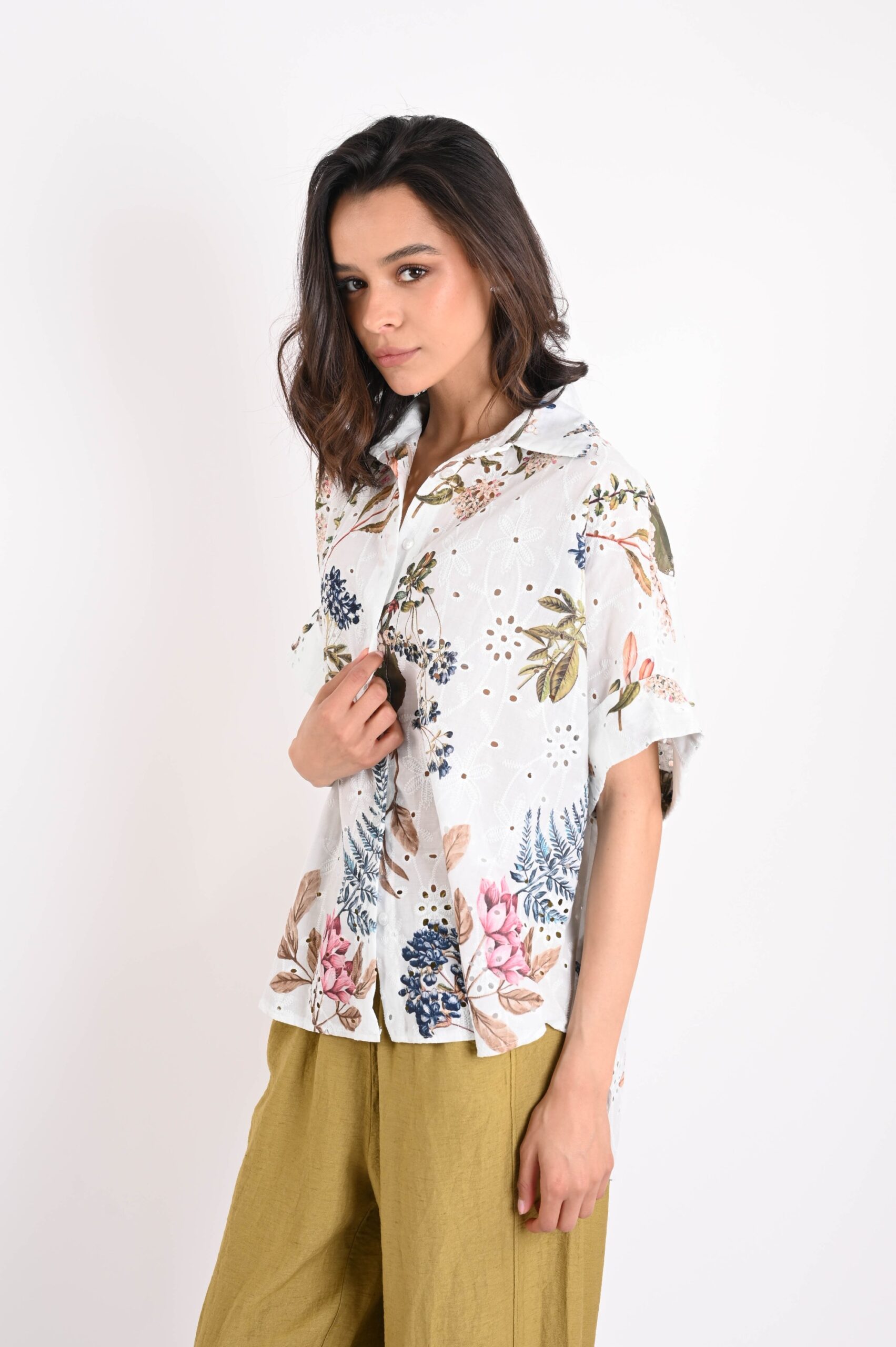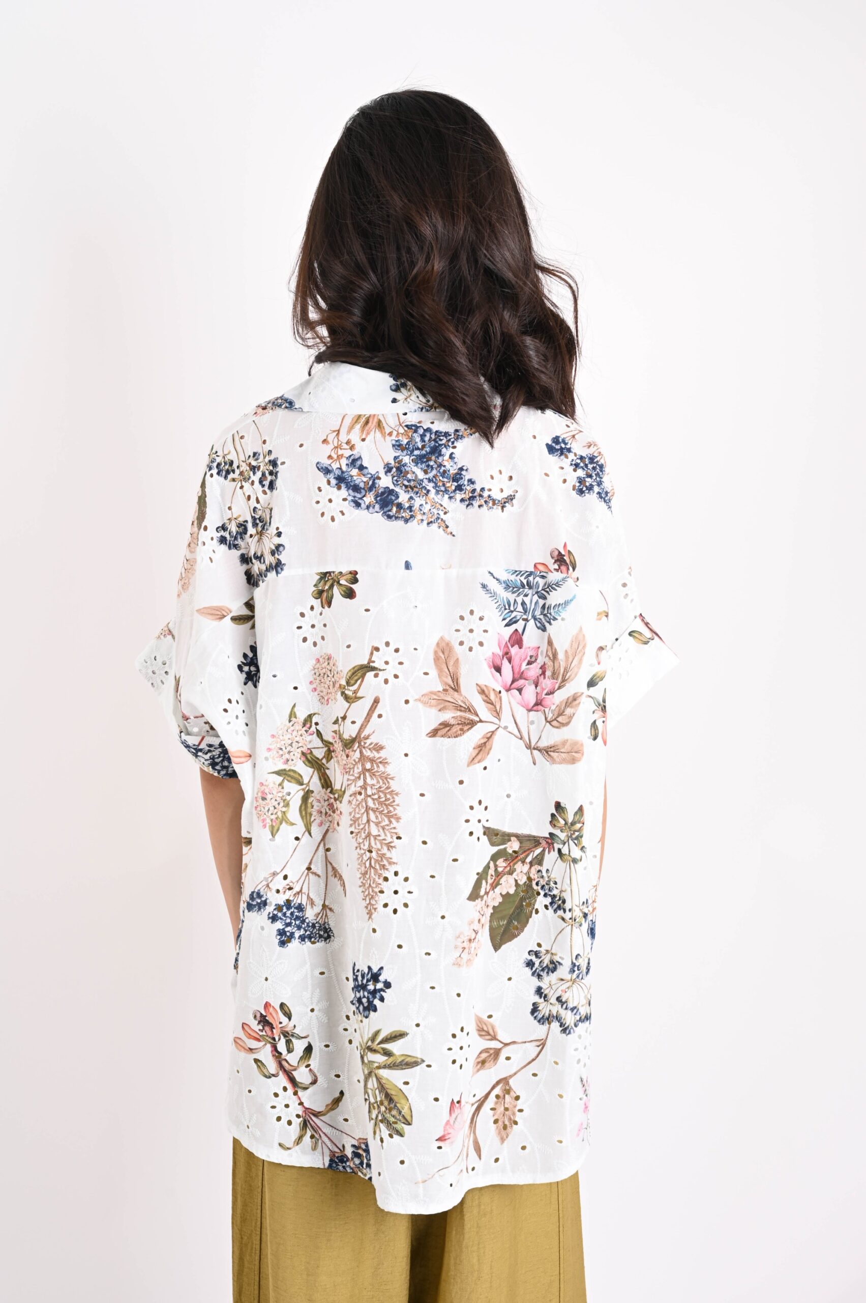 ASYMMETRICAL BRODERIE ANGLAISE SHIRT WITH FLORAL PRINT