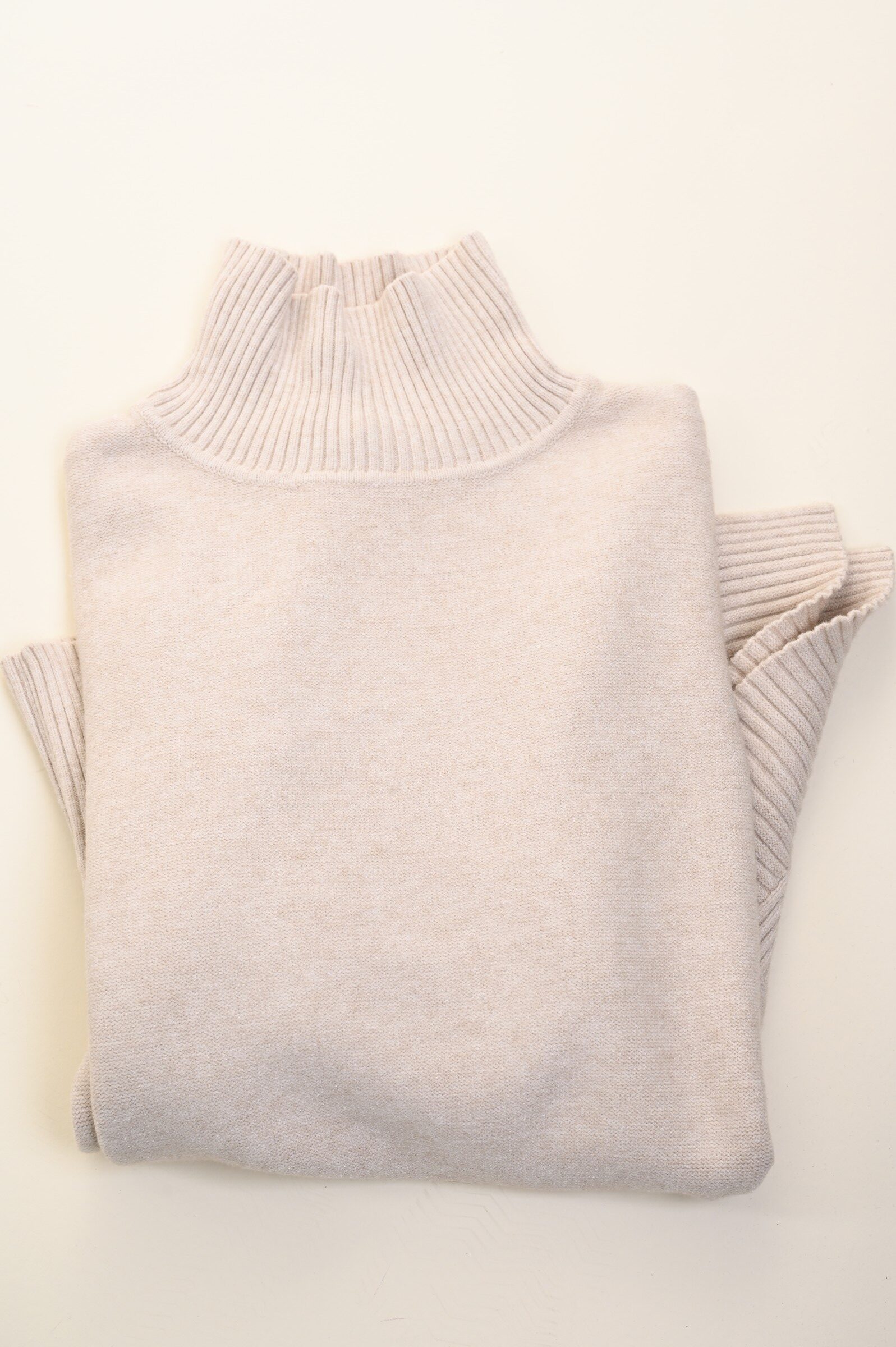 Oversized women’s turtleneck sweater with a ribbed design, ideal for boutiques seeking warm, refined and contemporary knitwear.