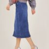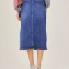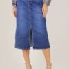 Midi jeans skirt with slit, stretch denim fabric. Regular fit.