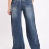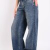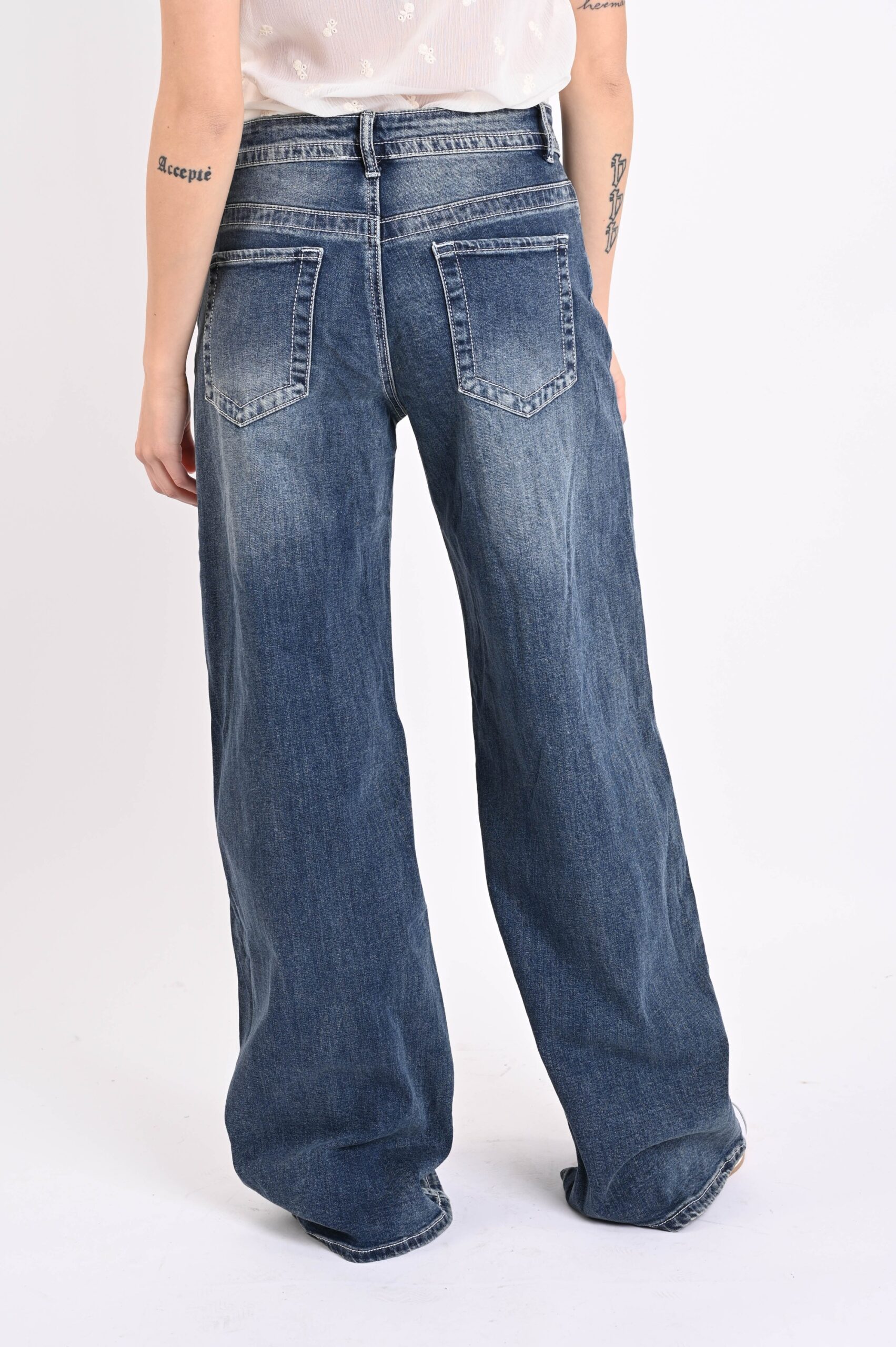 Palazzo jeans with a contemporary design, featuring a wide-leg silhouette that enhances the figure with both elegance and comfort. The fluid fit ensures freedom of movement, making them ideal for creating versatile outfits, from everyday looks to more refined styles. A trend-driven piece perfect for the season, designed for retailers looking to offer modern and feminine denim.