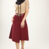 Falda de punto cruzada, con cintura elástica y bordes delanteros con flecos