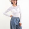 Top de encaje de manga larga. Perfecto para looks femeninos y contemporáneos. Su tejido ligero y semitransparente realza la silueta con un efecto elegante y versátil. Ideal para completar conjuntos casuales o refinados, combina fácilmente tanto con pantalones vaqueros como con faldas de sastre. Imprescindible para tiendas que buscan colecciones de moda contemporáneas y sofisticadas.