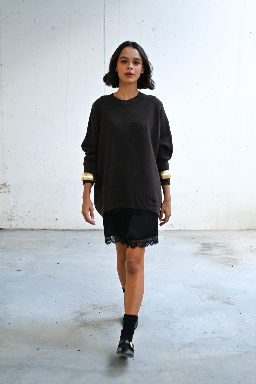 TOP IN PIZZO E SATIN CON SPALLINE REGOLABILI