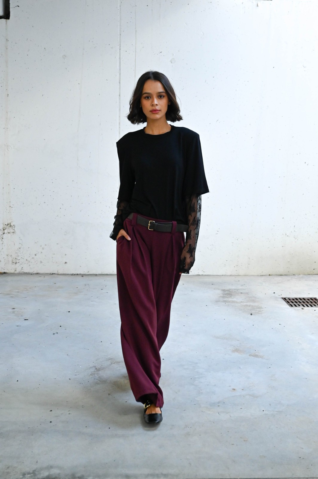 PANTALONI A PALAZZO CON PINCES E CINTURA