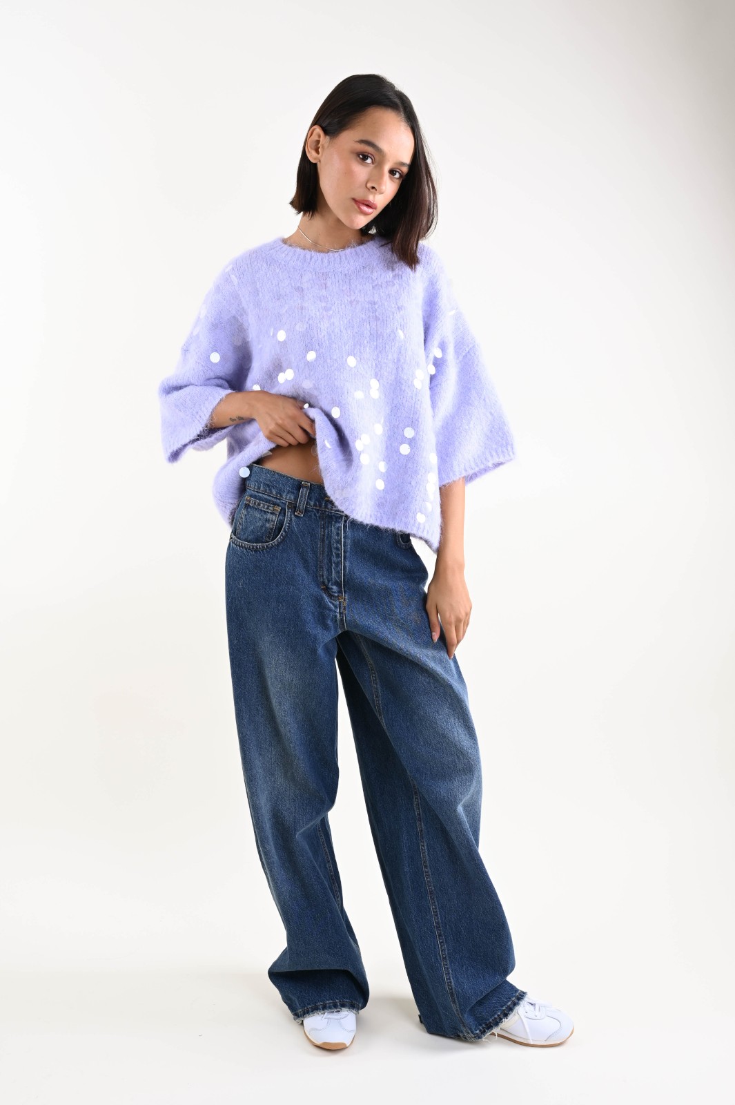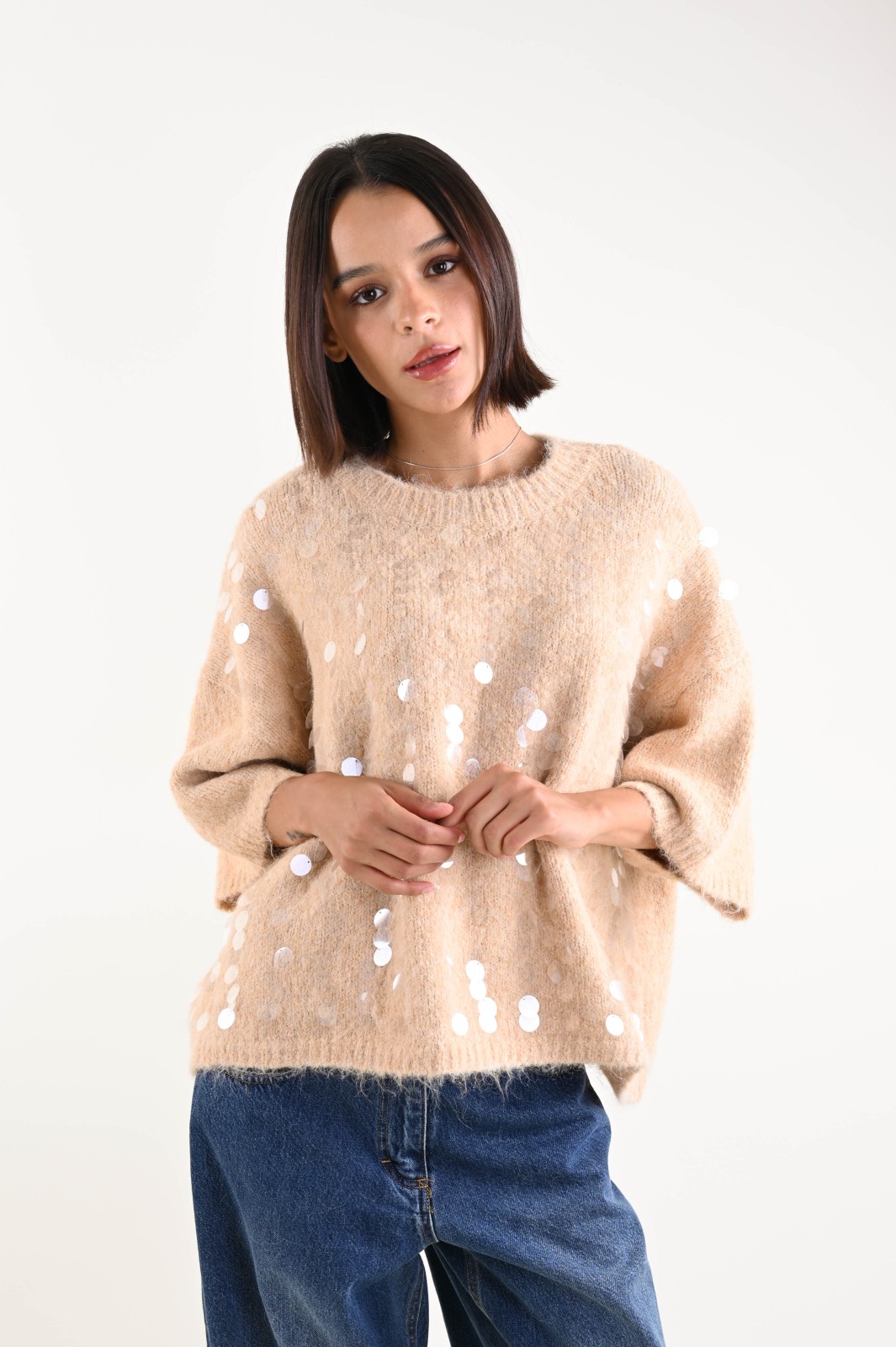 SUÉTER DE MANGA ¾ CON LENTEJUELAS MAXI