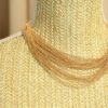 Este elegante y luminoso collar para mujer con acabado dorado presenta múltiples vueltas de finas cadenas. Su diseño multicapa crea un efecto dramático y sofisticado, perfecto para realzar escotes y añadir un toque de glamour a cualquier look. Una pieza versátil de bisutería, ideal tanto para looks de noche elegantes como para añadir personalidad a un estilo chic casual.