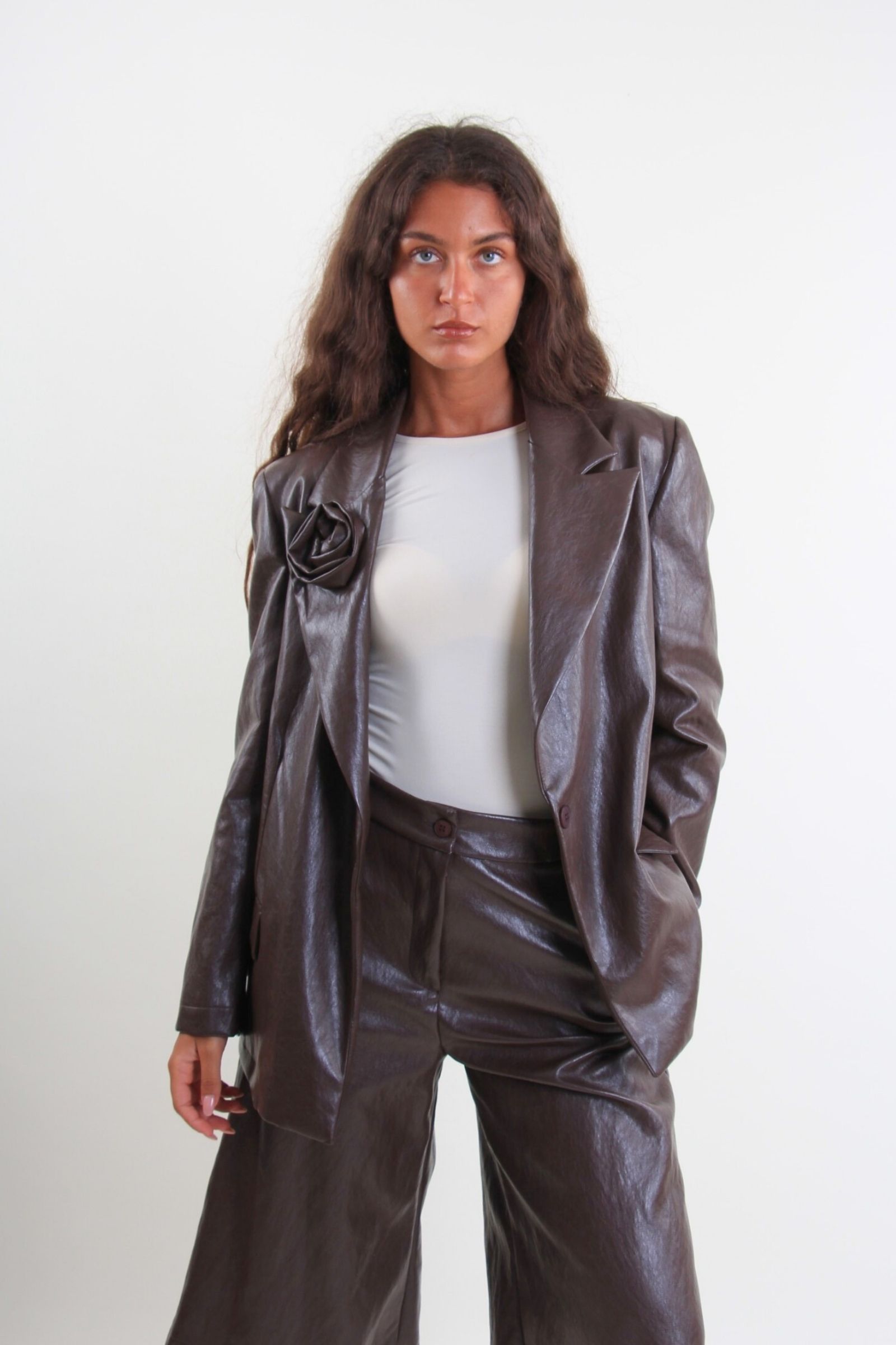 Chaqueta de piel sintética con efecto vintage para mujer con un aplique de rosa, perfecta para quienes adoran combinar el soul rockero con el romanticismo. El acabado desgastado del material le da un aspecto atrevido y contemporáneo, mientras que el aplique floral le da un toque femenino inesperado. Combínala con vaqueros, pantalones pitillo o vestidos ligeros para crear originales contrastes estilísticos. Una prenda con personalidad que destaca.