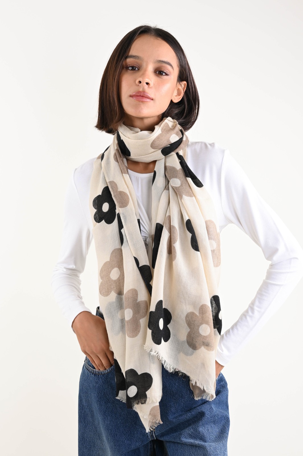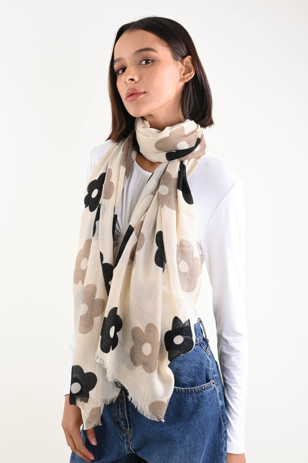 BUFANDA DE LANA CON ESTAMPADO DE FLORES