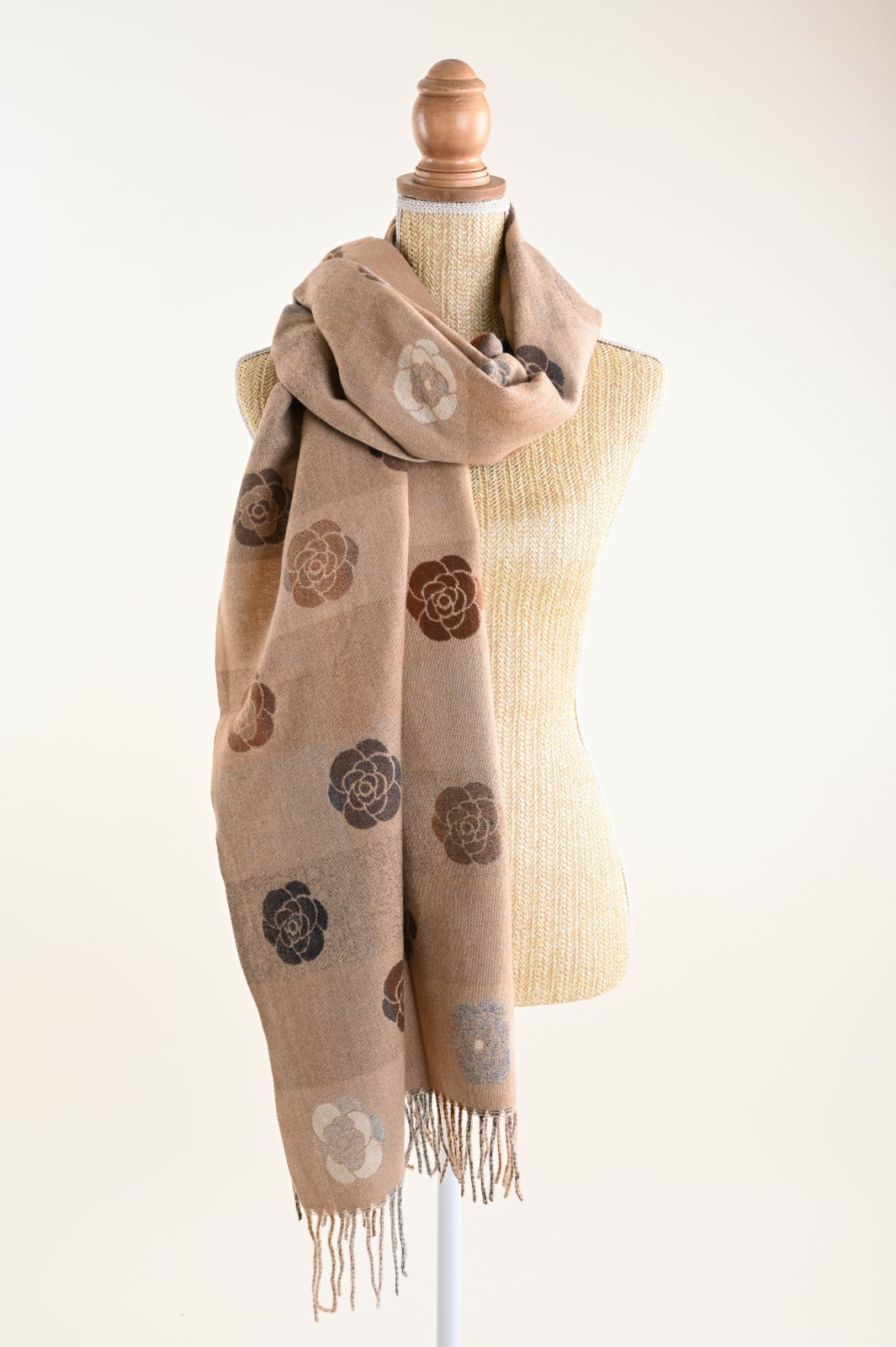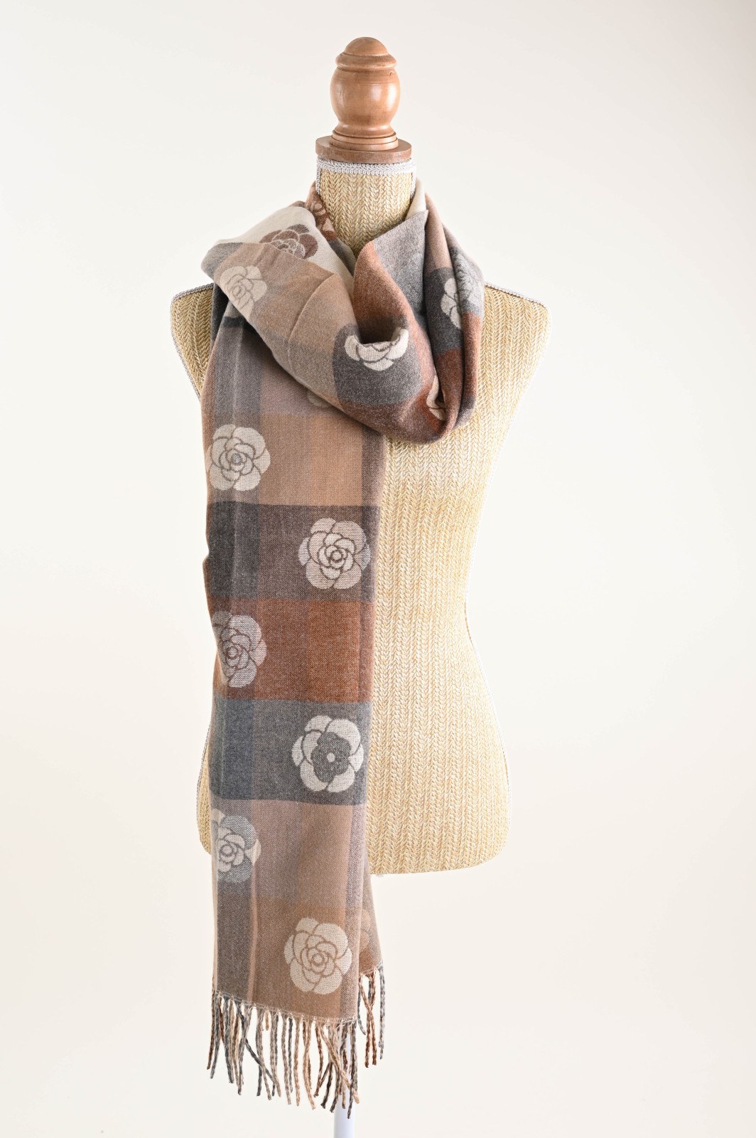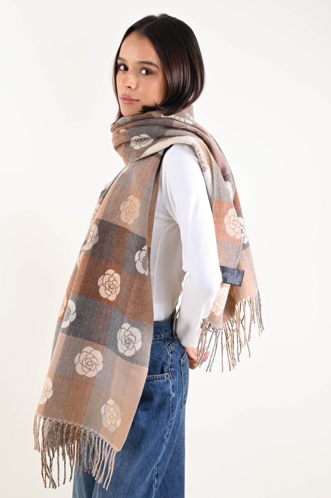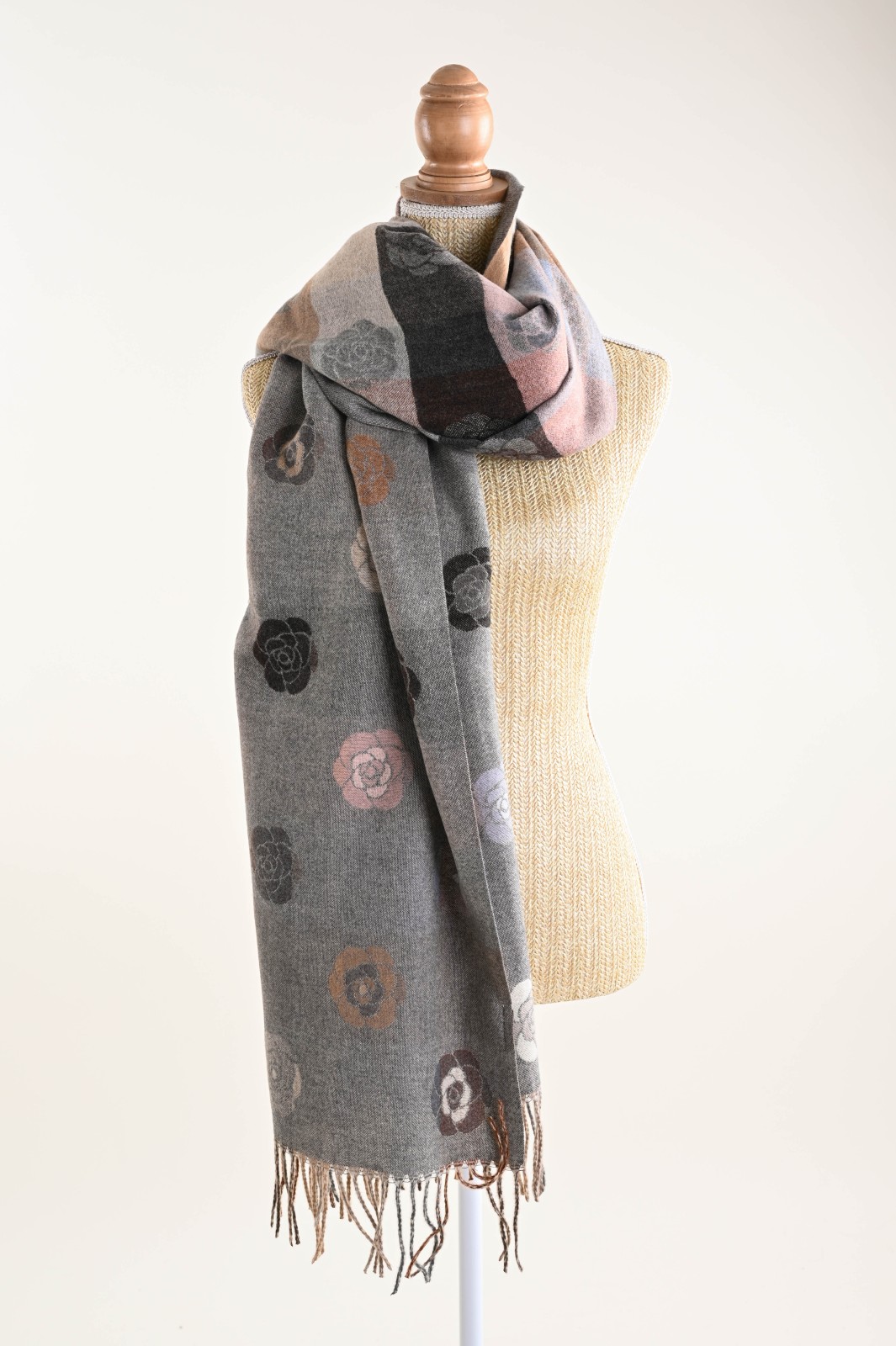 BUFANDA CON FLECOS Y ESTAMPADO DE ROSAS