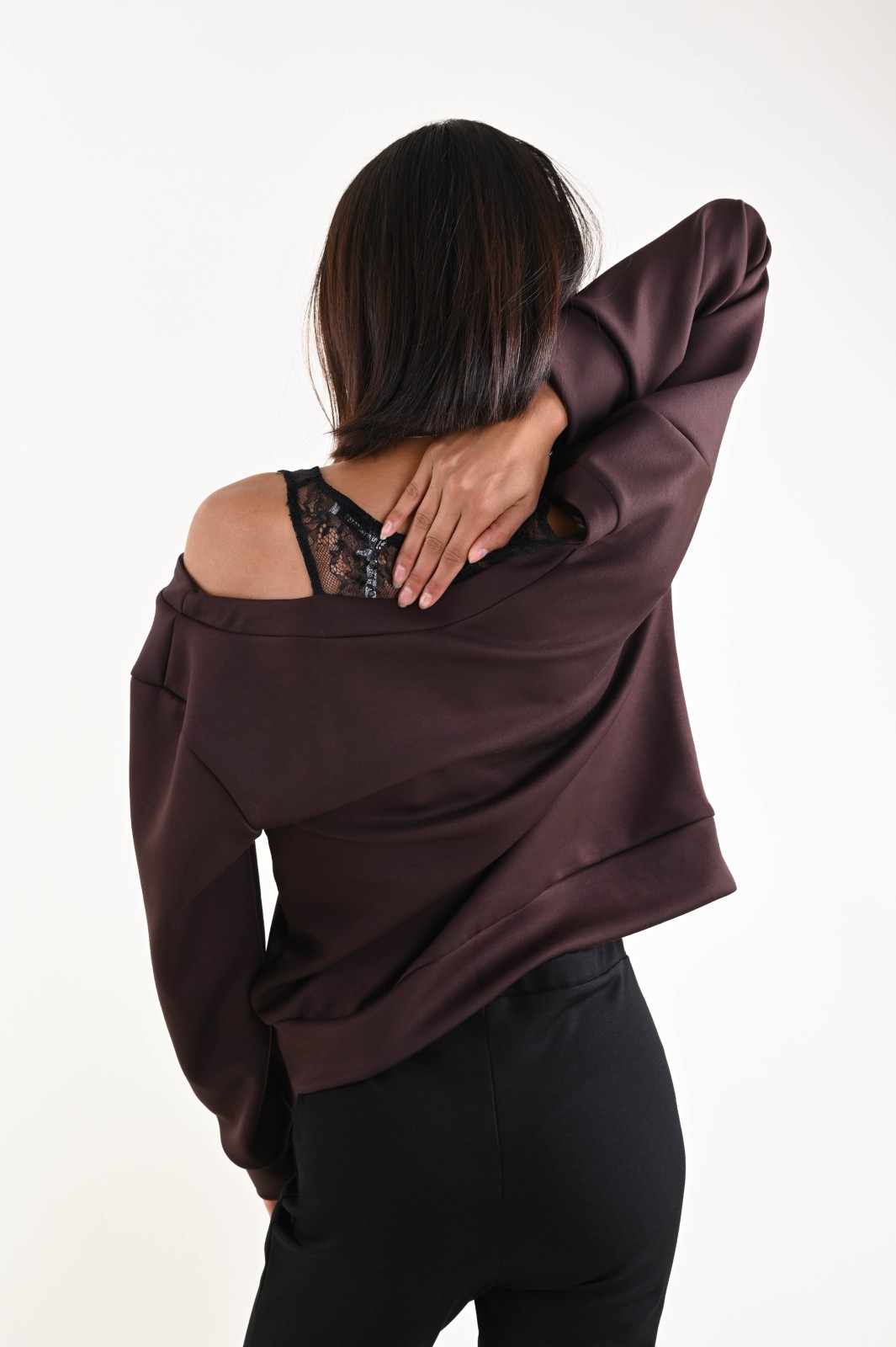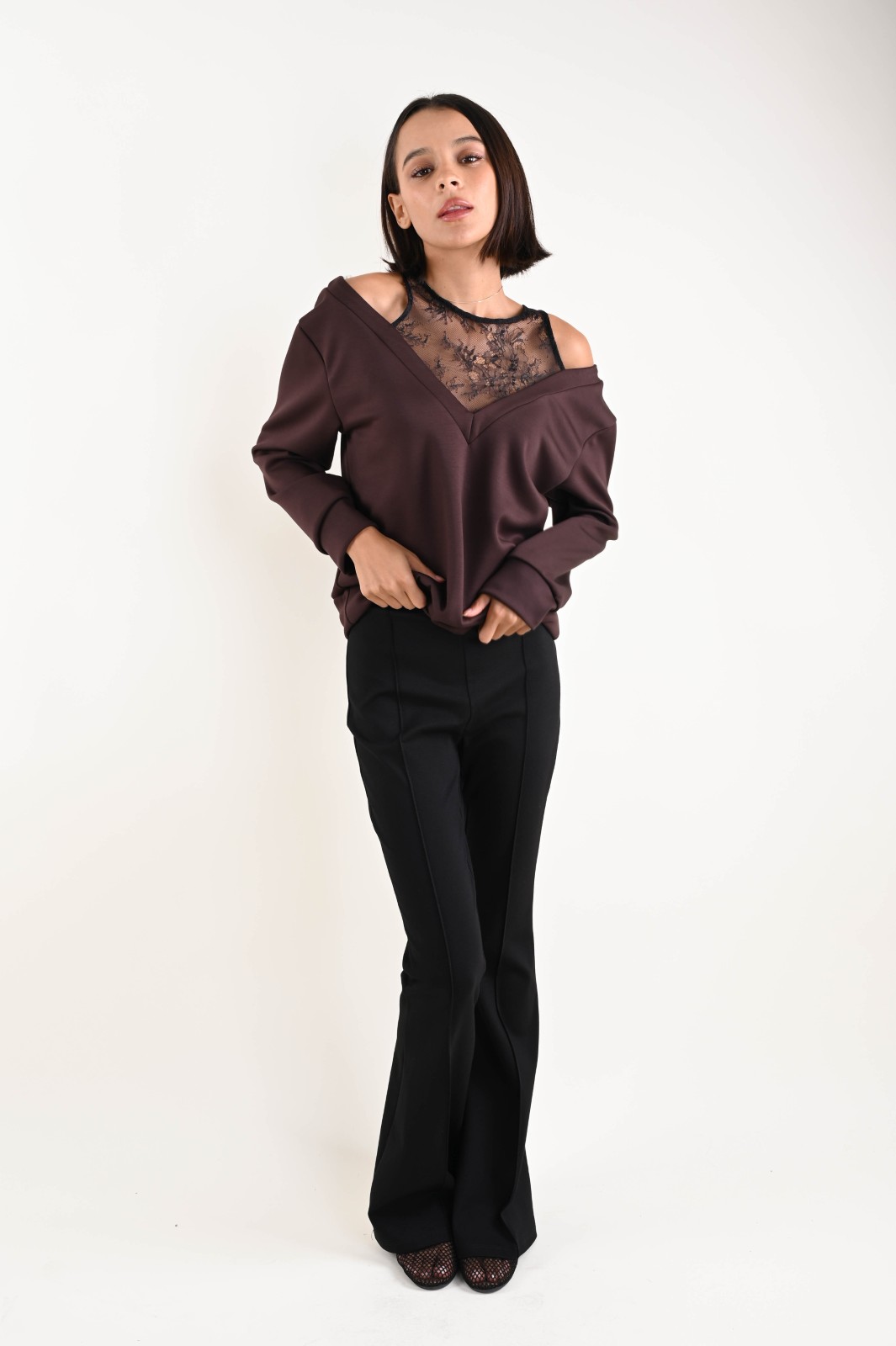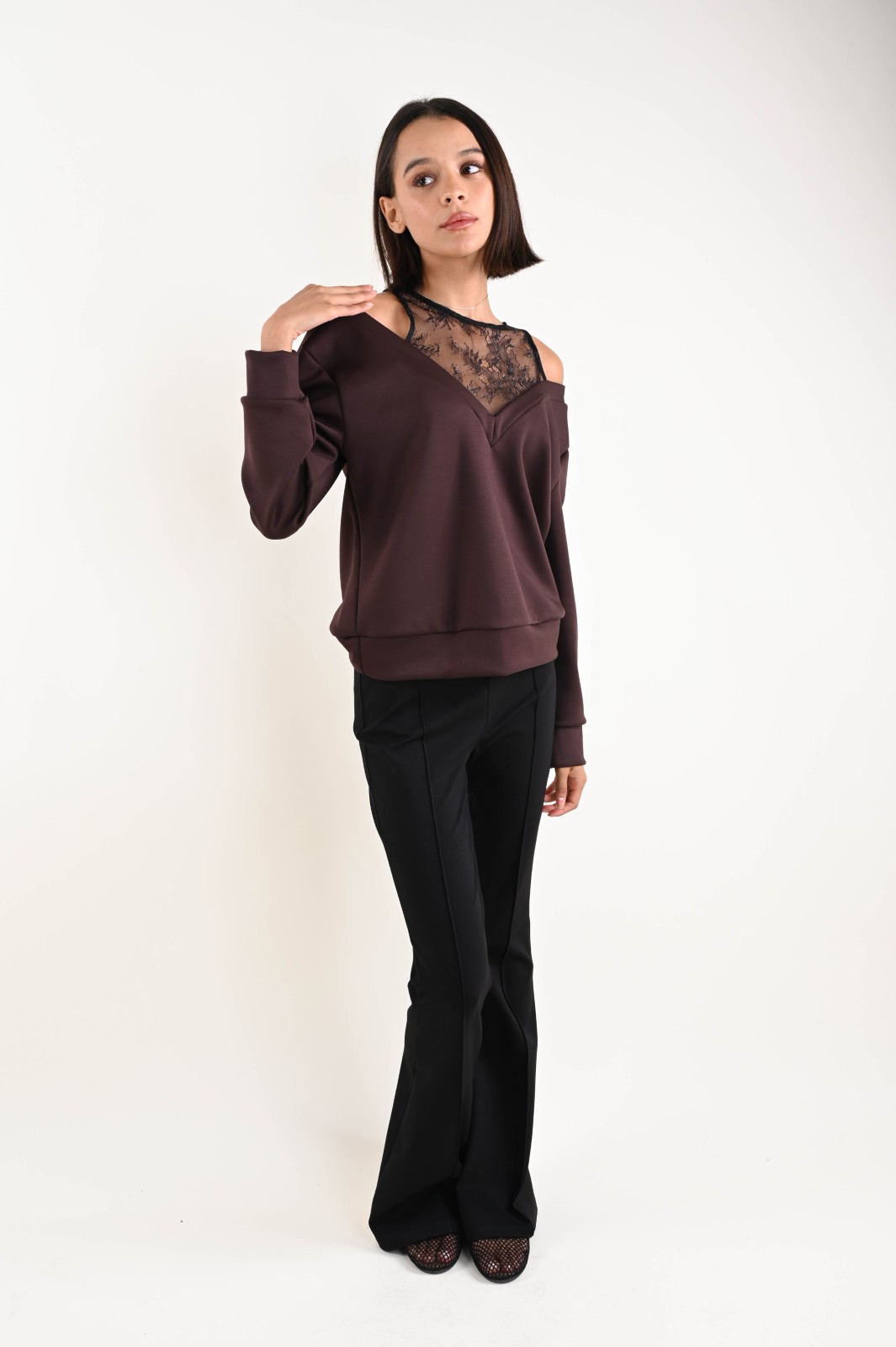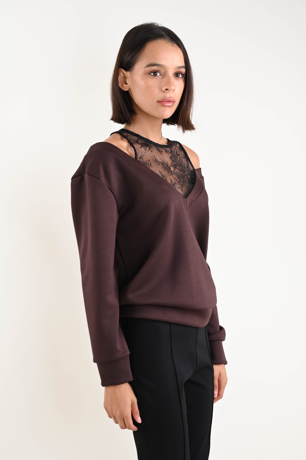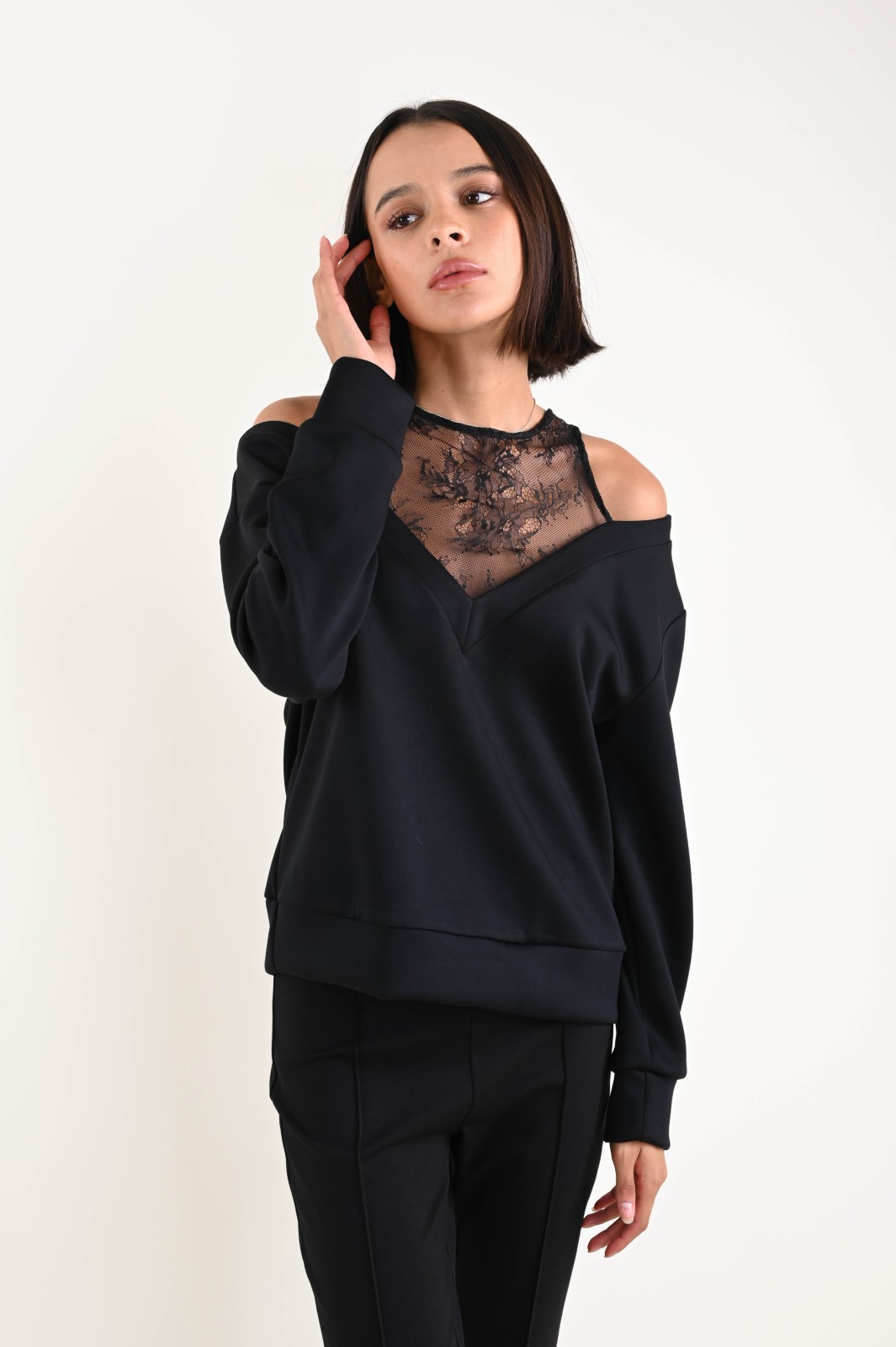Sudadera para mujer con un diseño moderno y femenino, con una refinada inserción de encaje en el escote y un escote en V que le da un toque sensual y elegante. Confeccionada en un tejido cómodo, es perfecta para quienes buscan una prenda informal con detalles de moda. Versátil y fácil de combinar, se puede llevar con vaqueros para un look chic de diario o con pantalones elegantes para un conjunto más sofisticado. Una sudadera glamurosa que combina practicidad y estilo, ideal para destacar con originalidad.