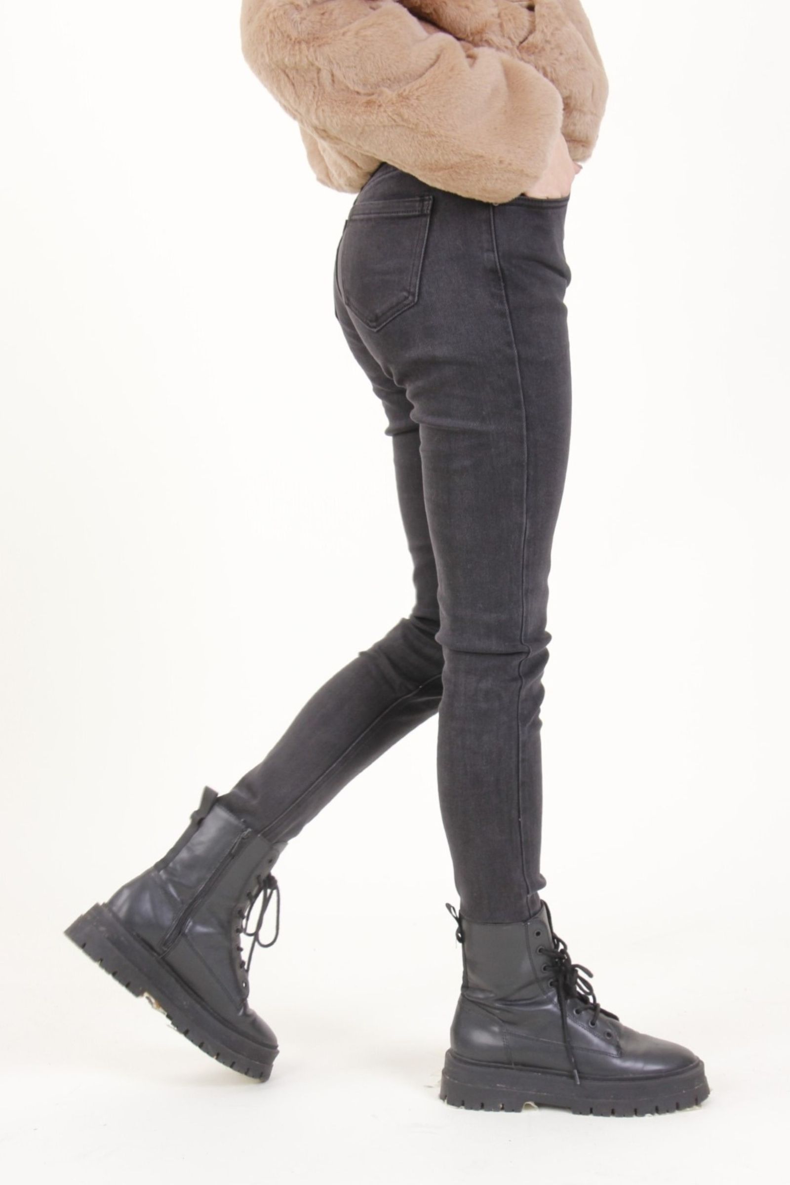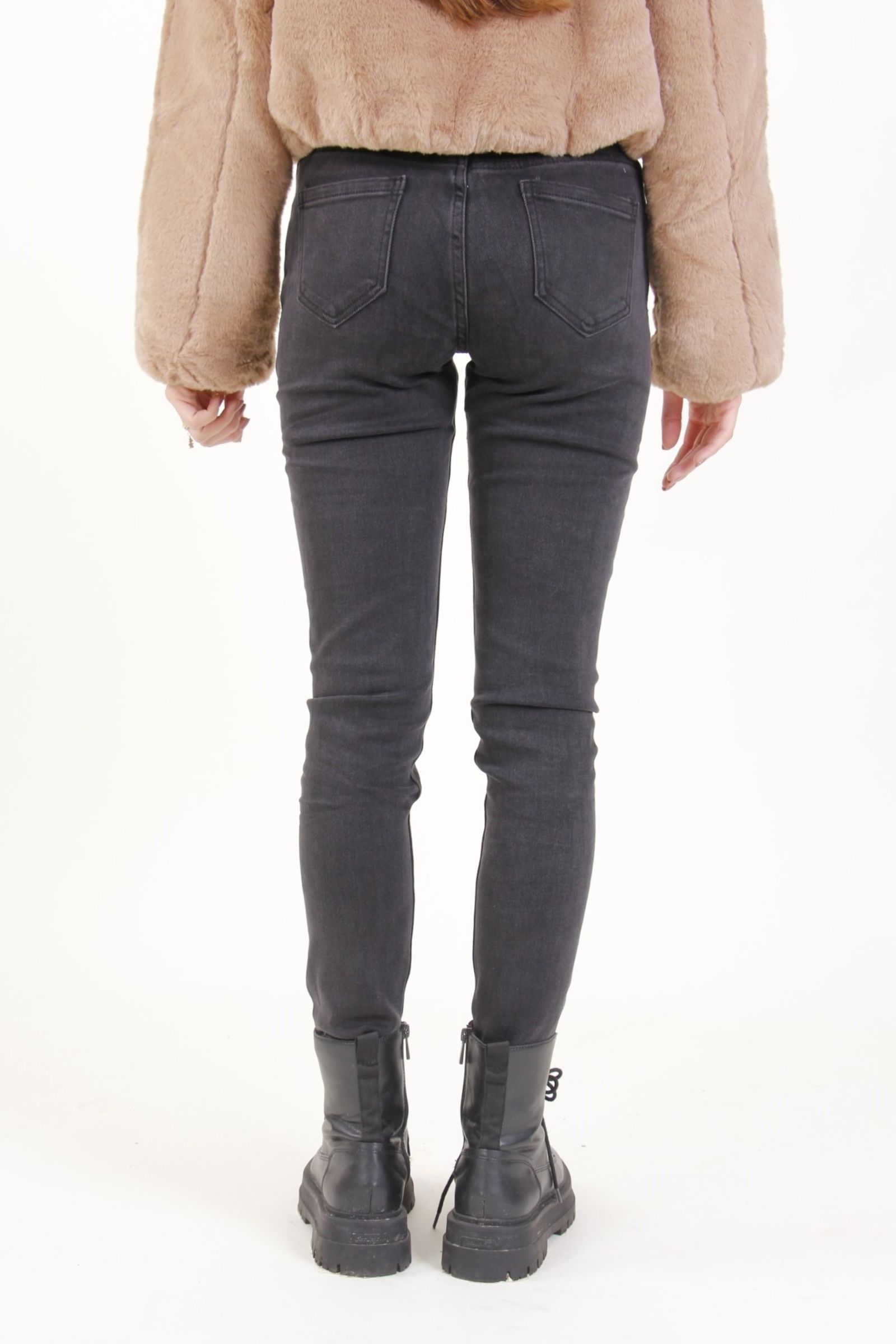 Vaqueros pitillo elásticos negros, cinco bolsillos. Ajuste regular.
