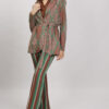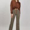 Pantaloni flare a vita alta elasticizzata in lurex. Orlo dalla linea svasata. Vestibilità regolare.