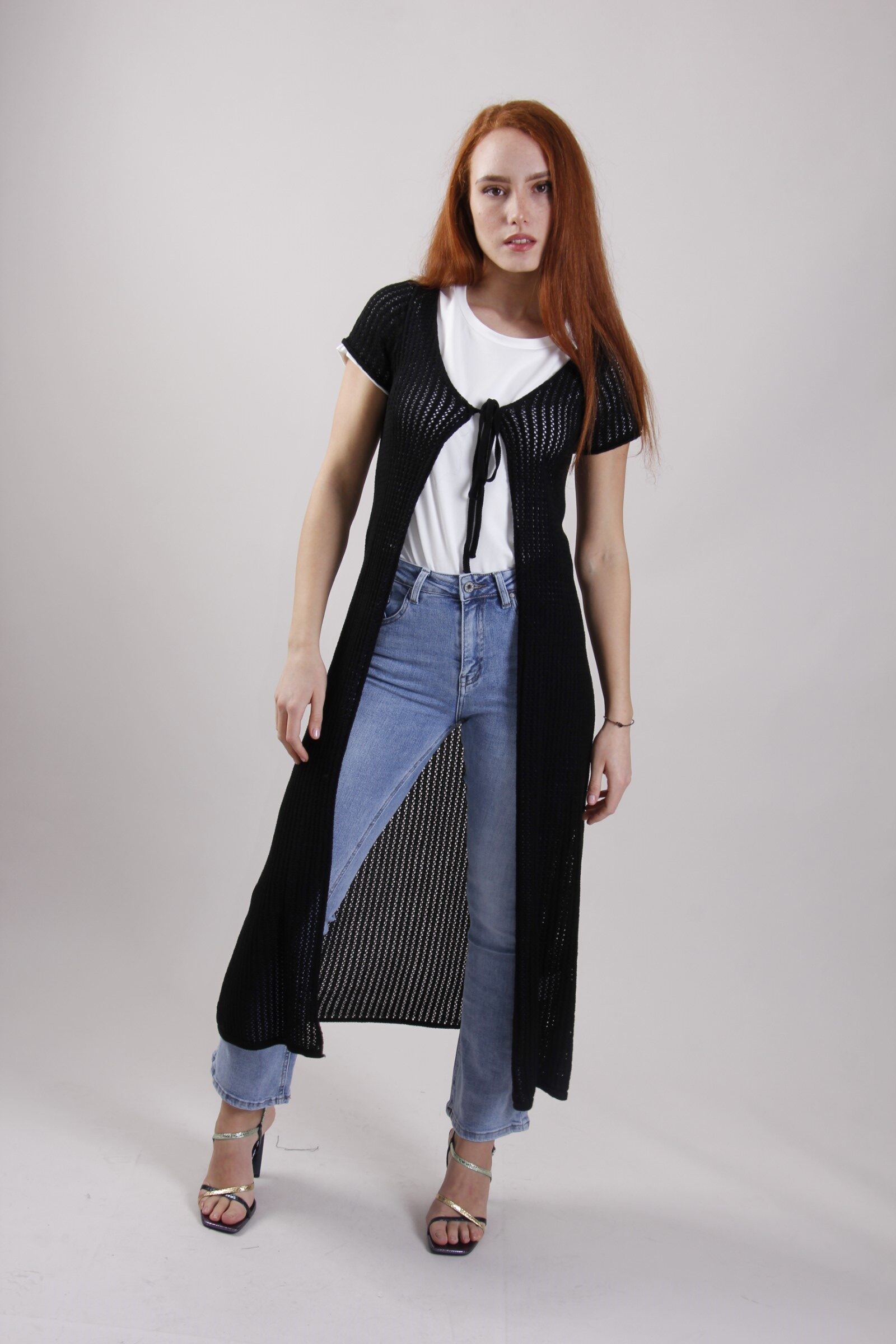 CÁRDIGAN LARGO PERFORADO MANGA CORTA