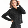Cárdigan de punto adornado con lentejuelas y botonadura a tono. Una prenda luminosa y refinada, perfecta para añadir un toque de elegancia a tus looks diarios. Suave y cómodo, se puede llevar abierto sobre una blusa o cerrado como un suéter para un look más sofisticado. Ideal para conjuntos versátiles con un aire contemporáneo.