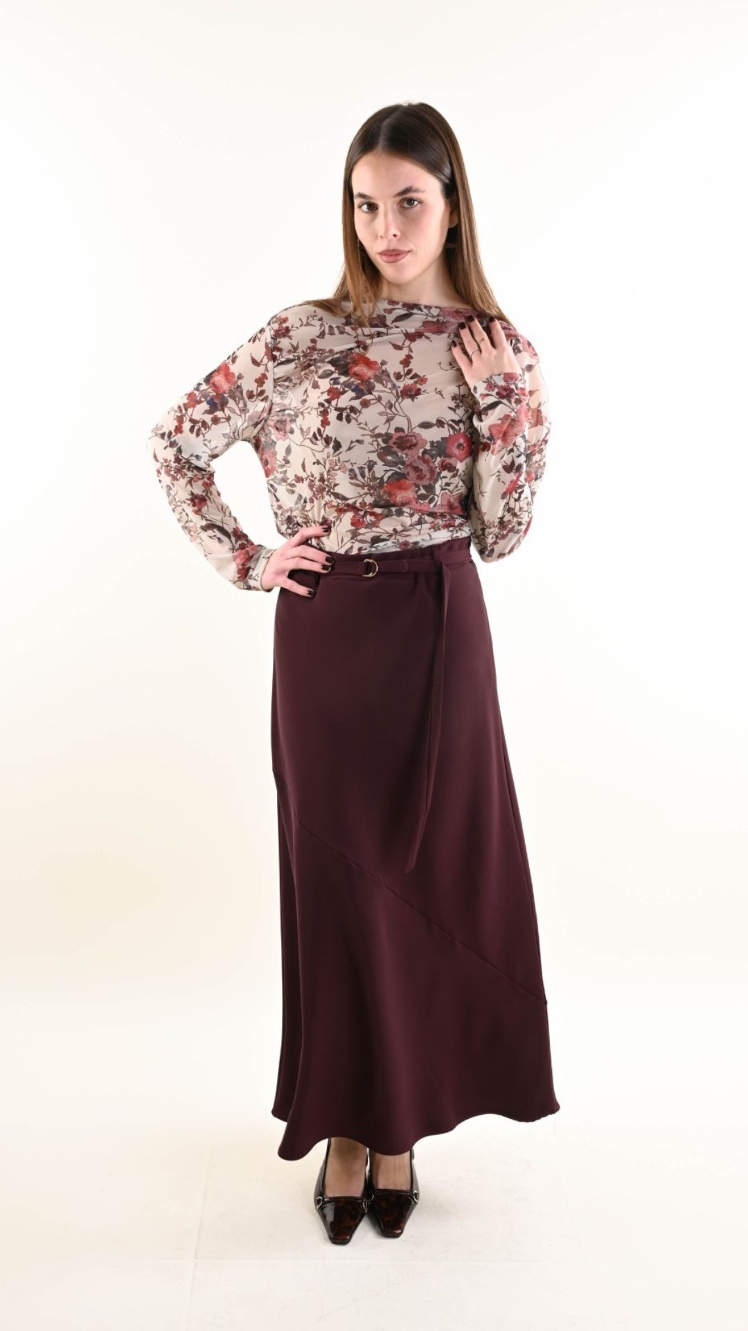 GONNA MIDI IN TESSUTO FLUIDO CON CINTURA