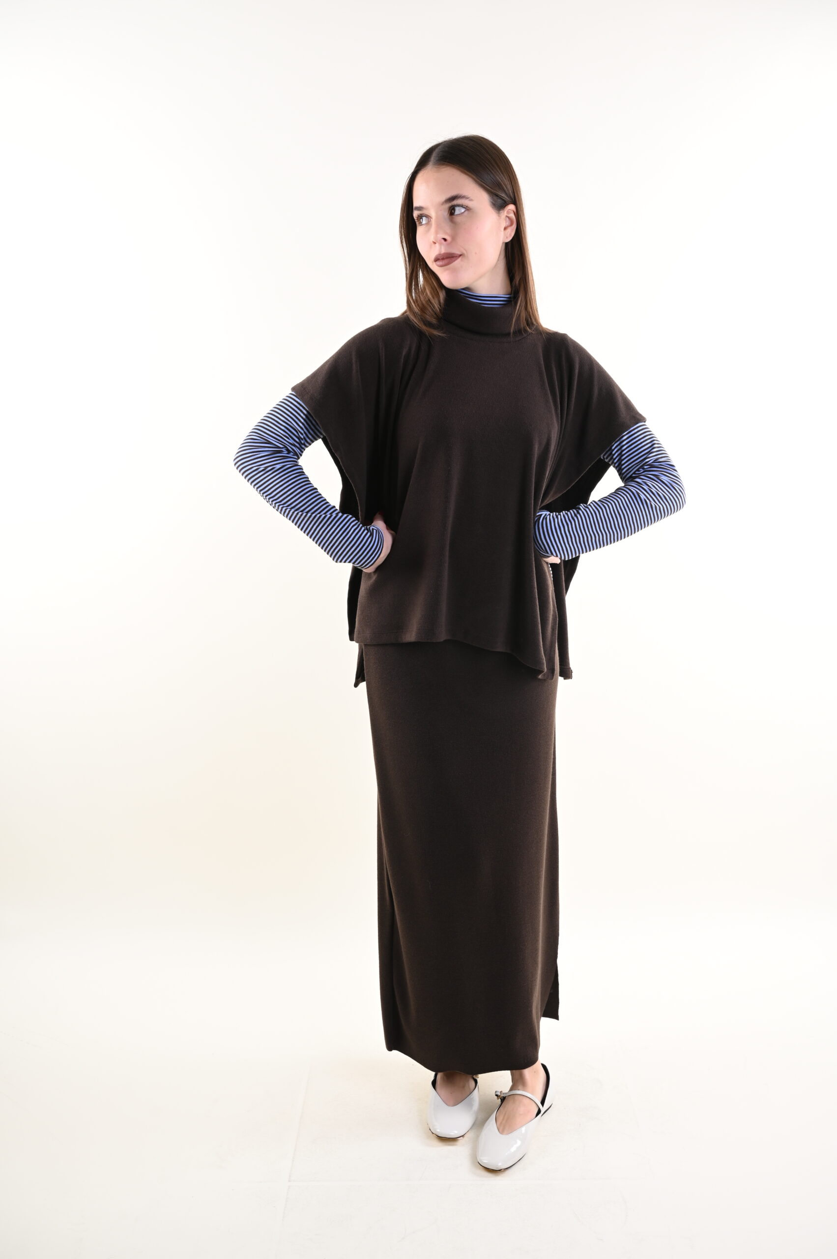 MAGLIA A RIGHE FELPATA CON COLLO ALTO