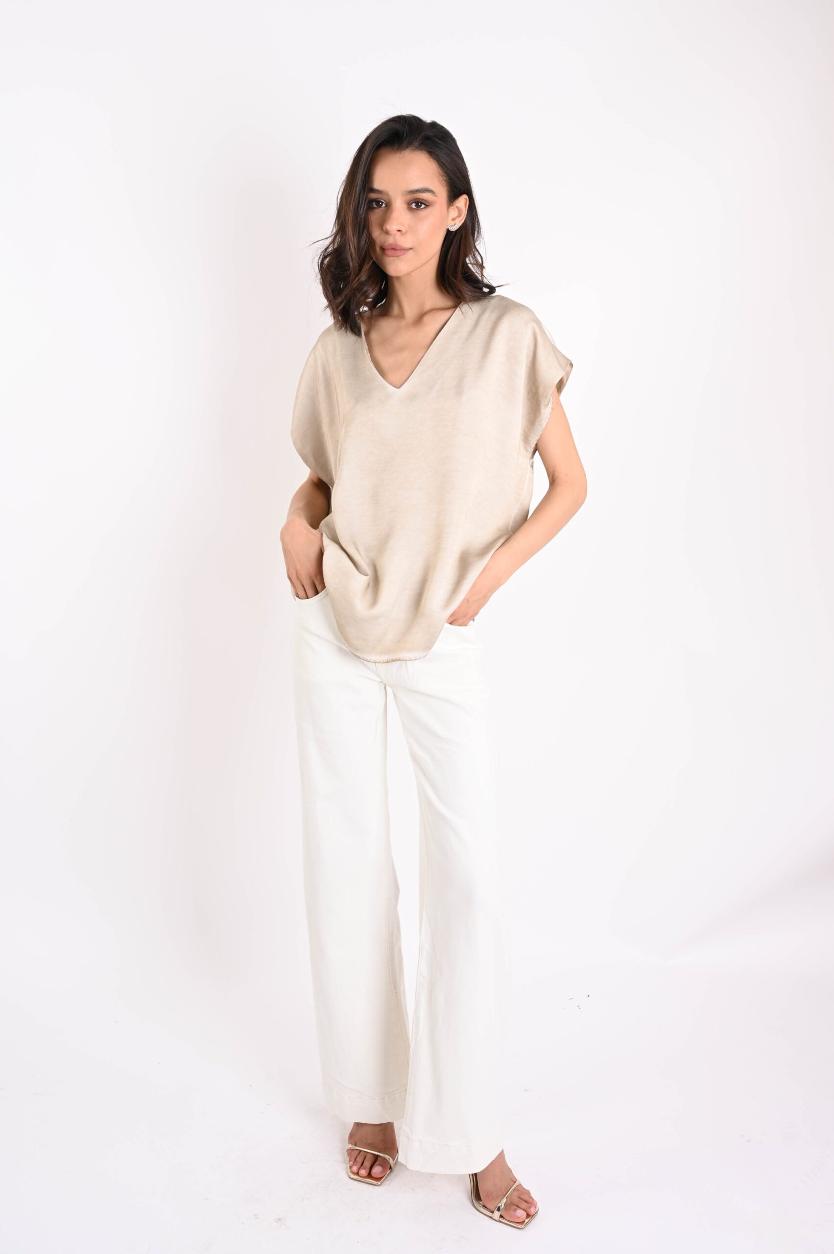 BLUSA SCOLLO A V TINTO FREDDO - Beige, S 16.50 Iva escl.