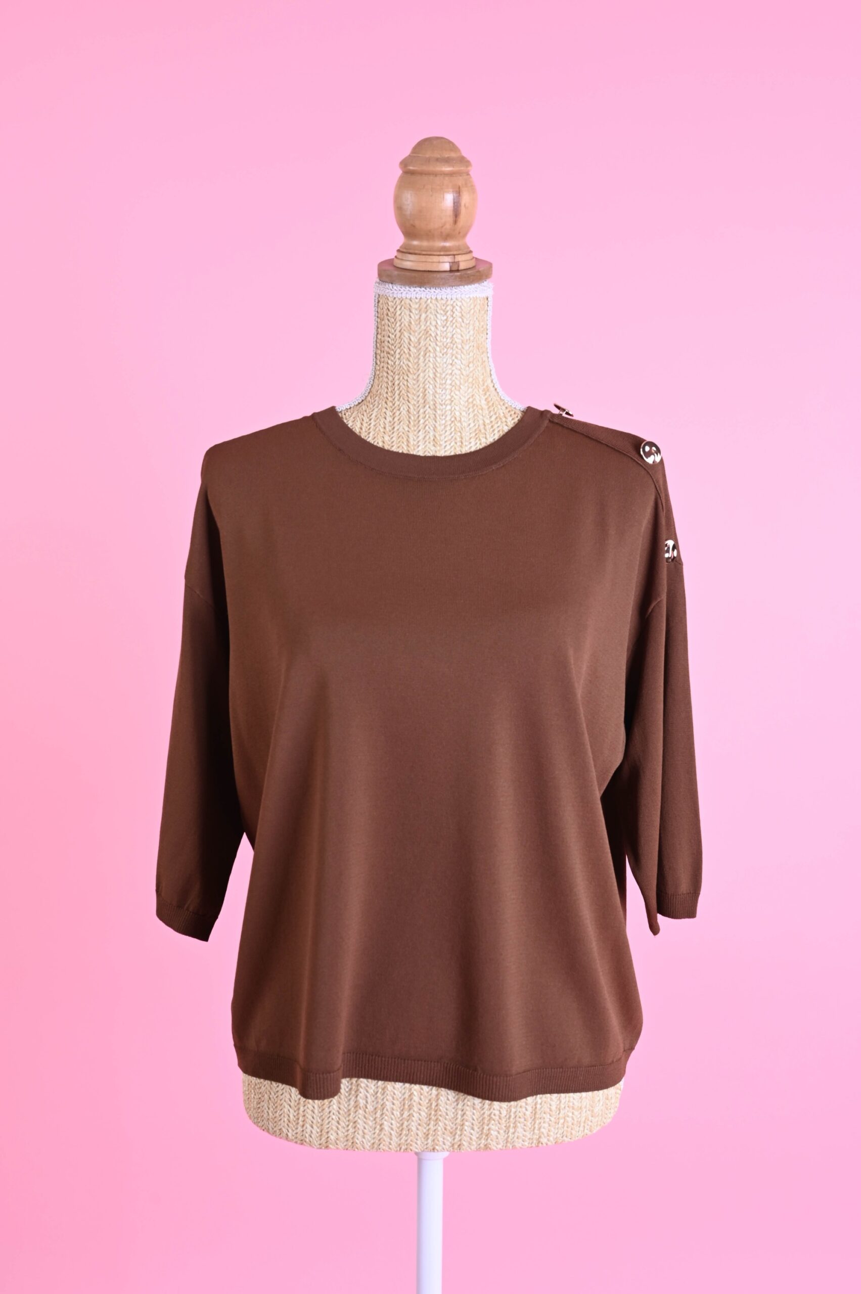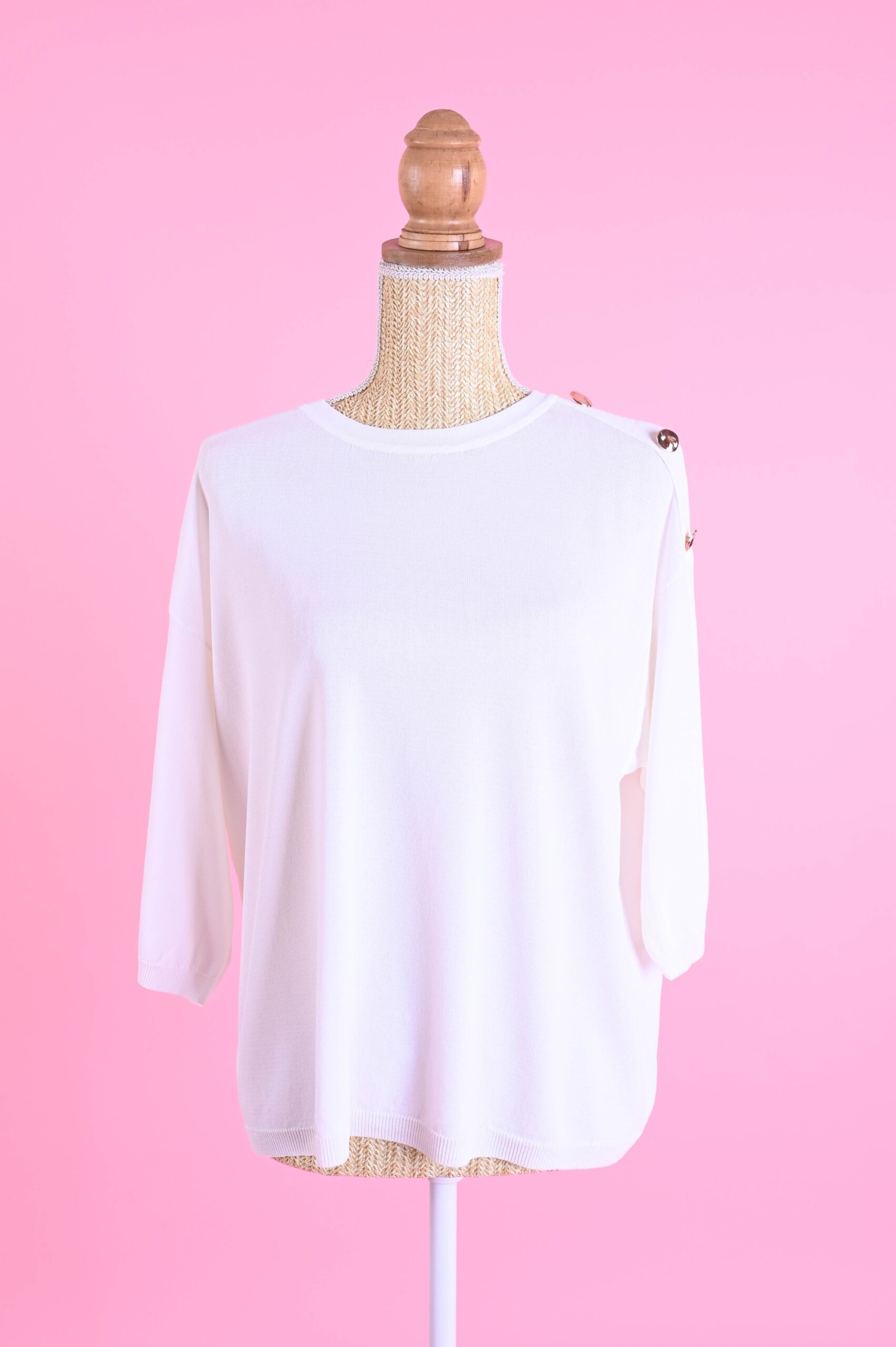 MAGLIA MANICHE A ¾ CON BOTTONI DECORATIVI SULLA SPALLA