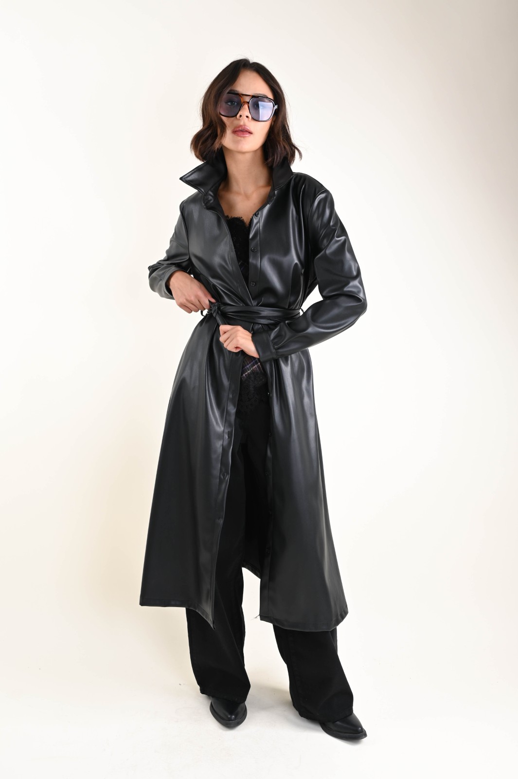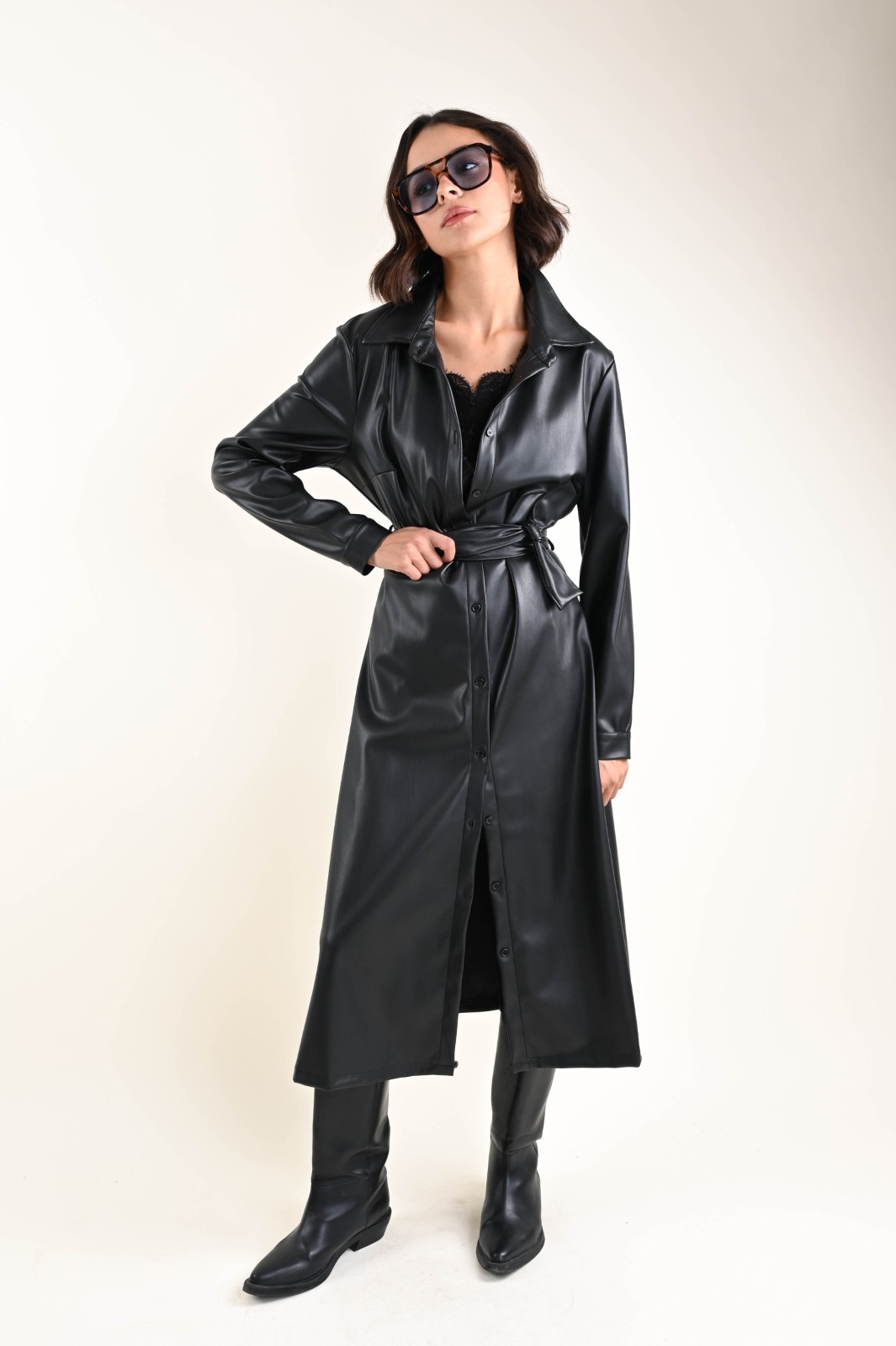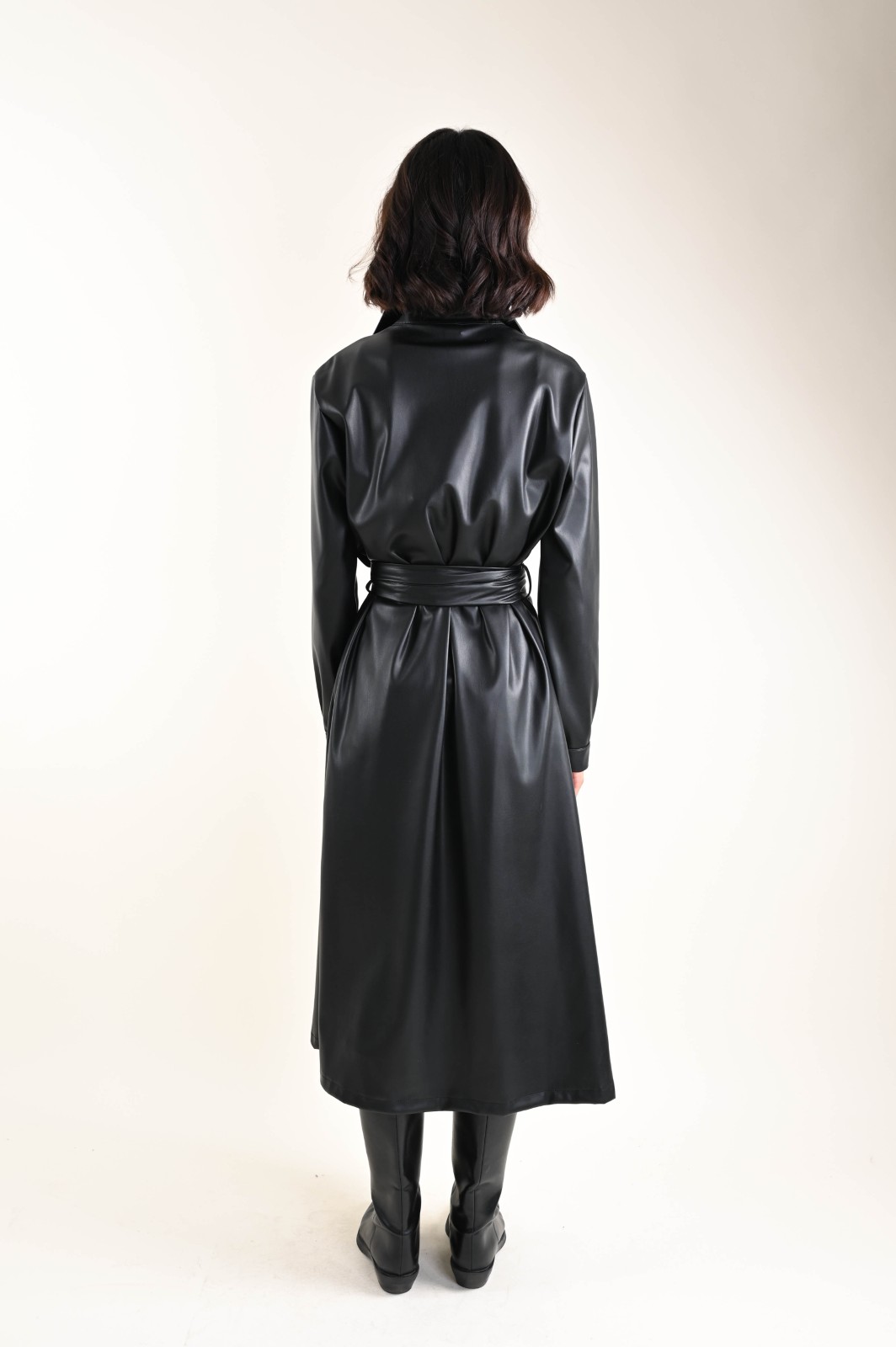 ABITO CHEMISIER A MANICHE LUNGHE IN ECOPELLE