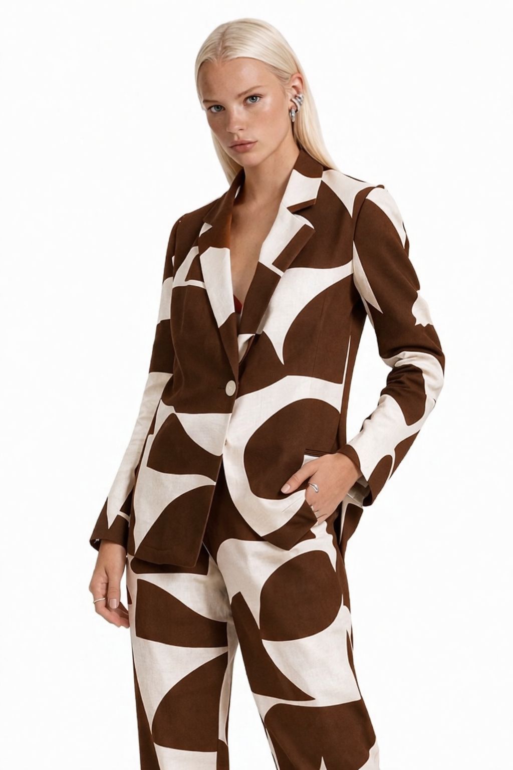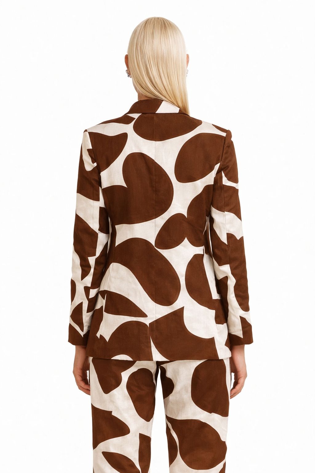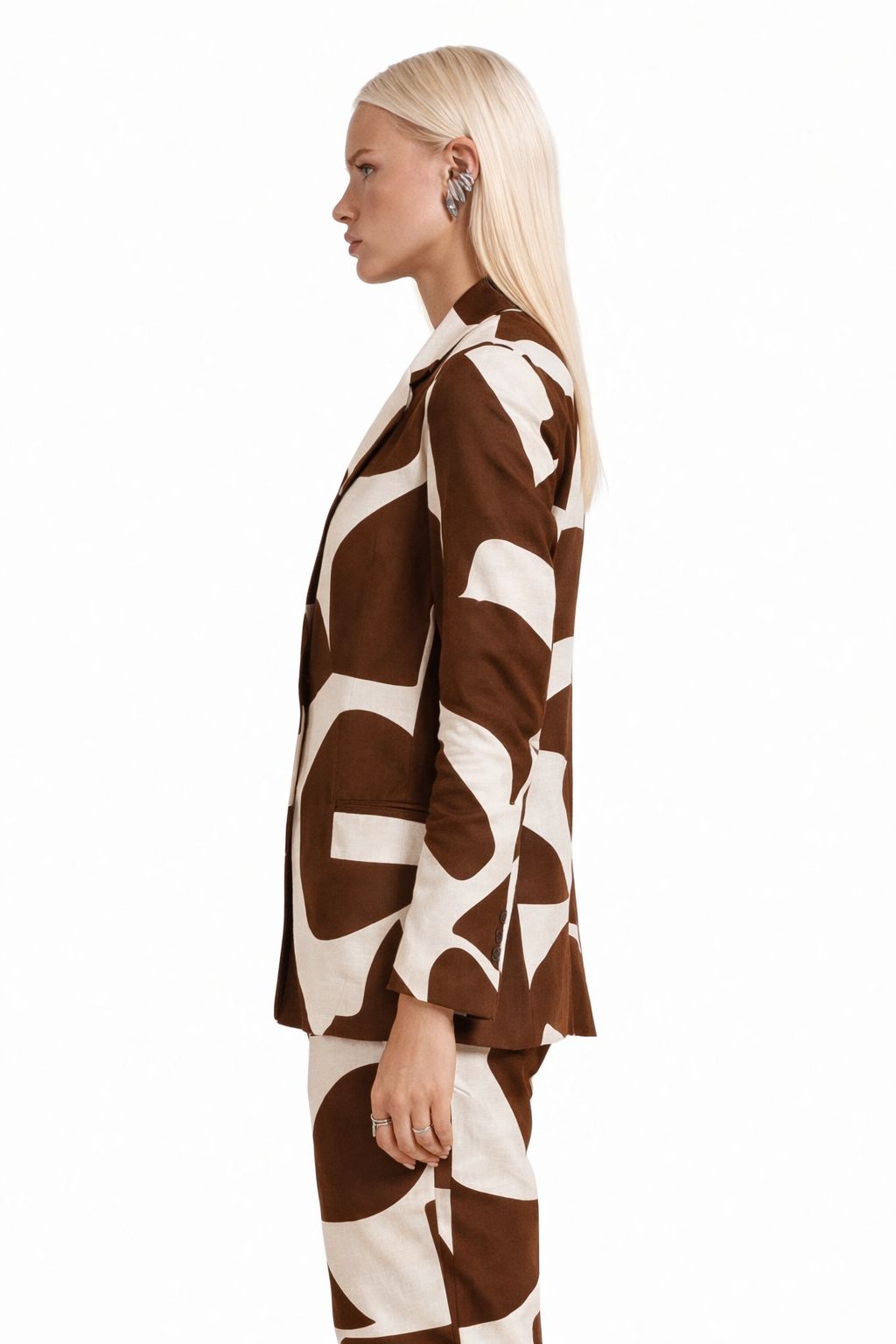 Giacca leggera monopetto in fantasia astratta, ideale per completare look contemporanei con un tocco distintivo. La linea pulita e la vestibilità fluida la rendono un capo versatile, perfetto per accompagnare sia outfit quotidiani che più ricercati.