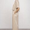 Il tessuto leggero e dalla texture naturale valorizza il movimento del capo, creando un effetto morbido e sofisticato. Il taglio wide leg dona eleganza e slancio, rendendo questo pantalone un must-have versatile per la stagione estiva.