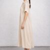 Il tessuto leggero e dalla texture naturale valorizza il movimento del capo, creando un effetto morbido e sofisticato.