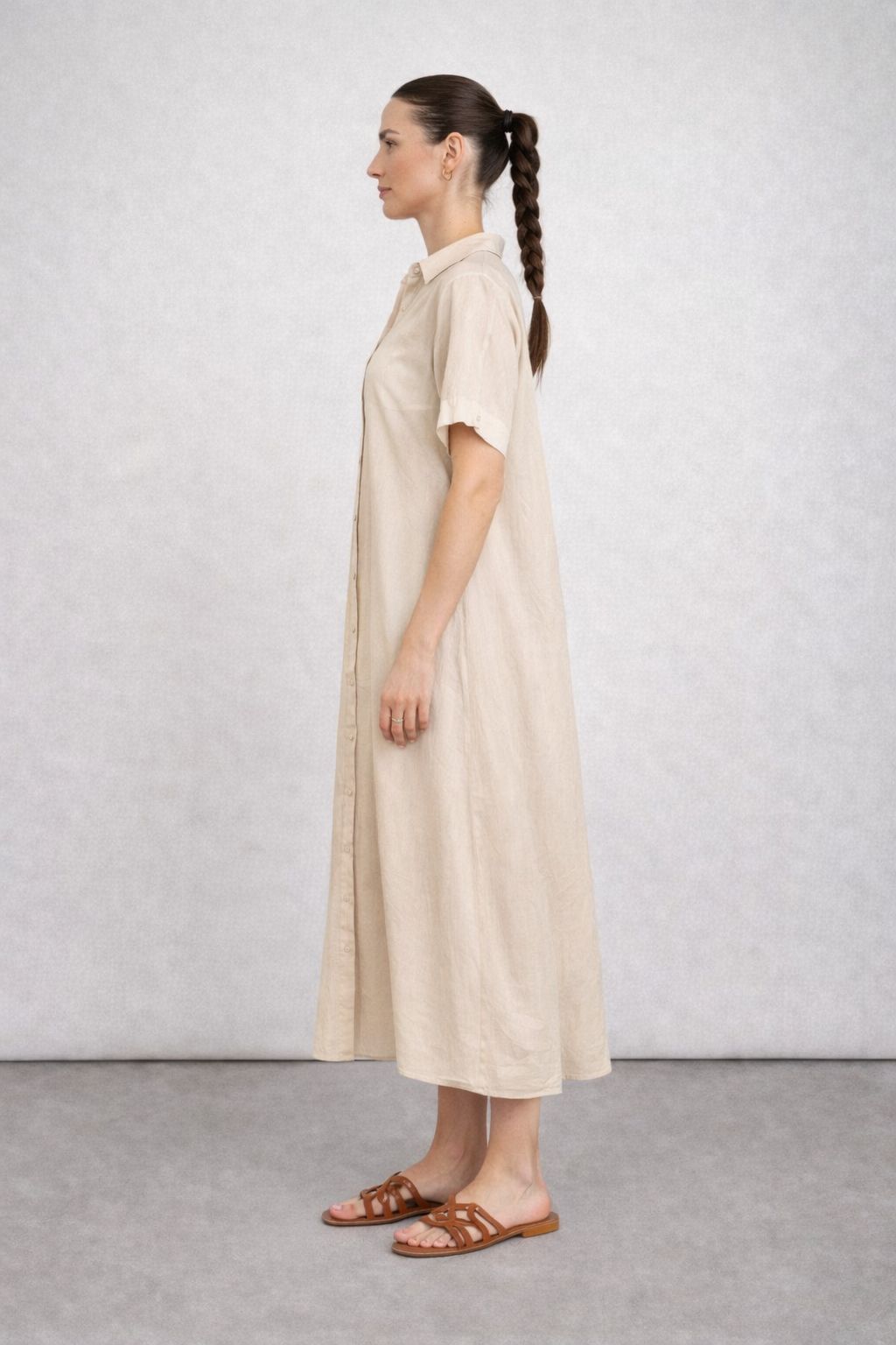 ABITO CHEMISIER A MANICHE CORTE IN TENCEL