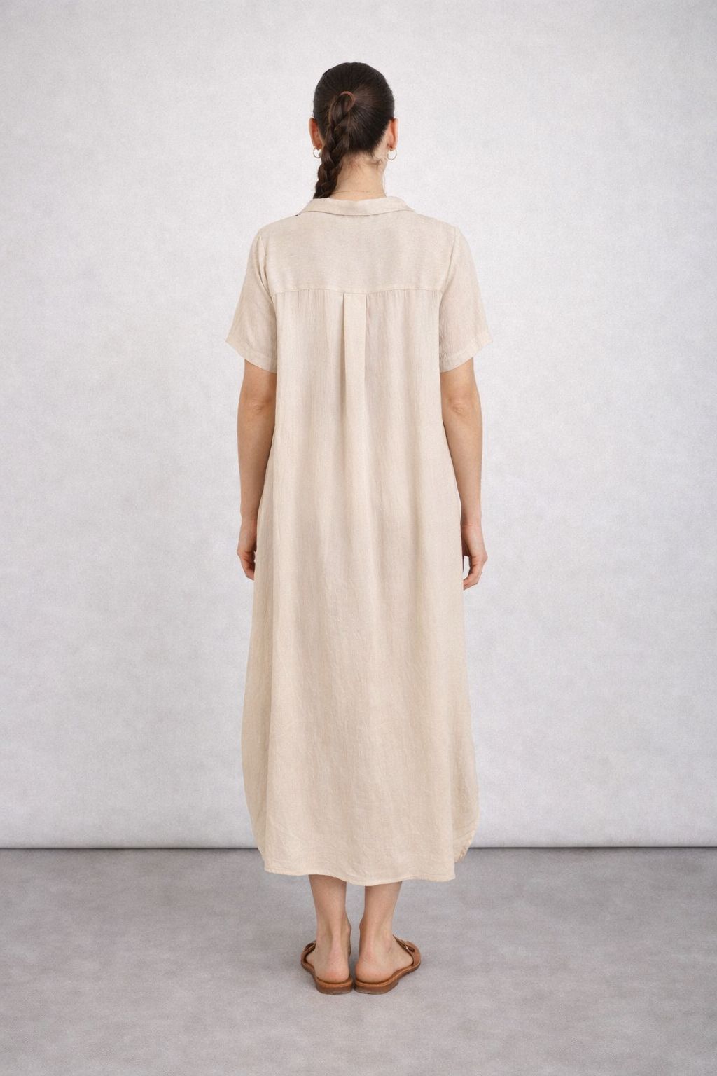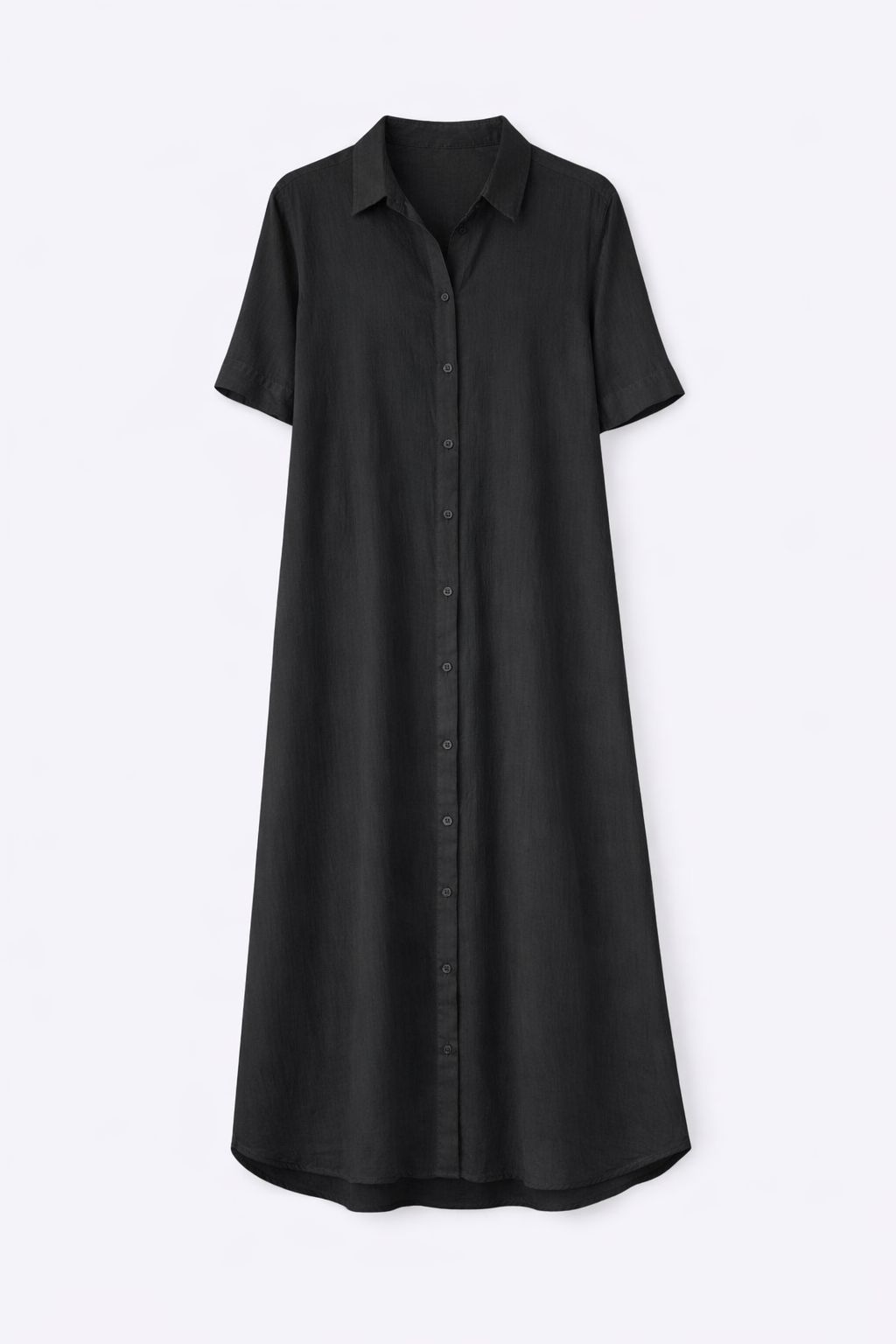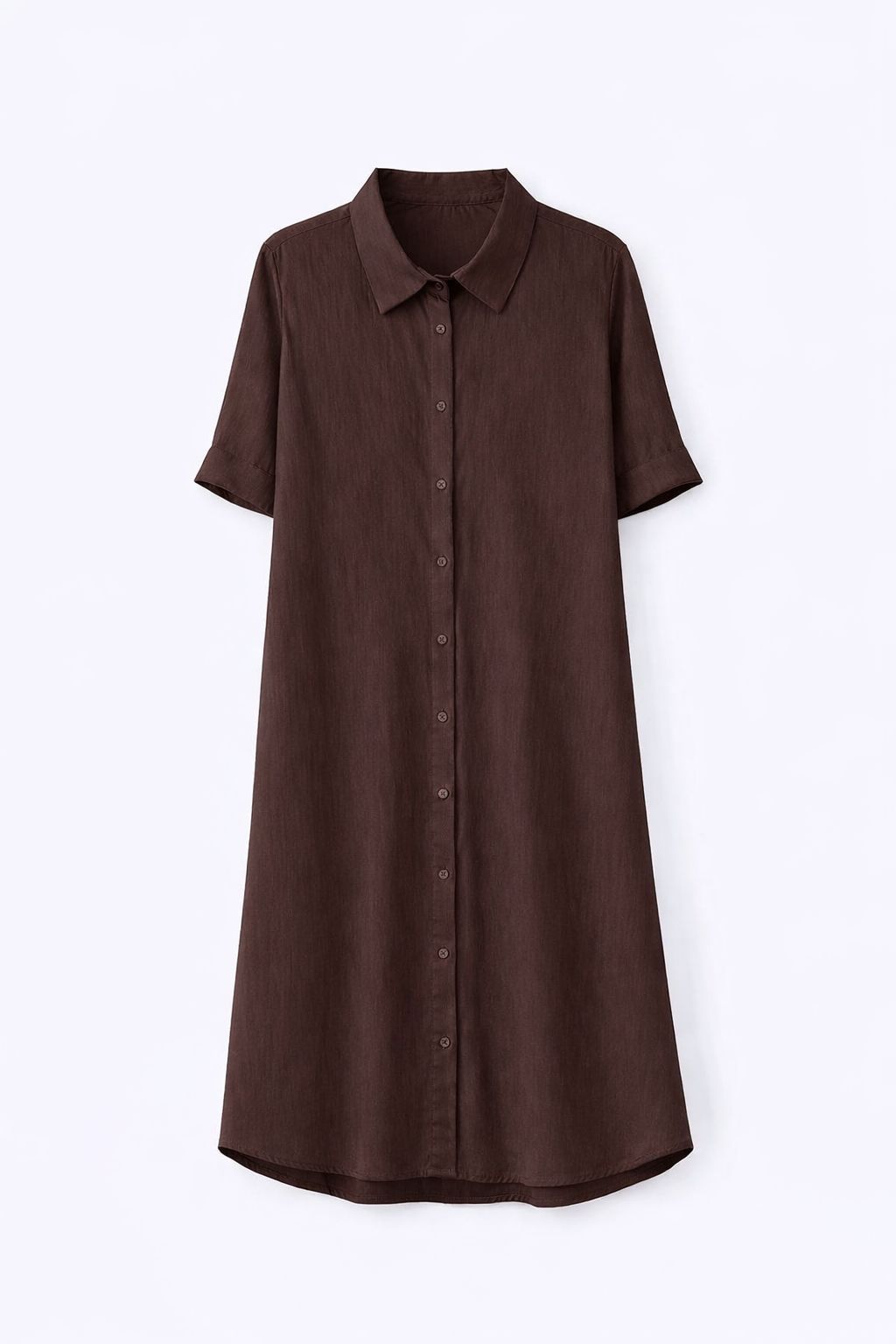 Abito chemisier in tencel dalla linea fluida, caratterizzato da una vestibilità confortevole e contemporanea. Bottoni a chiusura che garantiscono praticità e adattabilità, rendendolo ideale per diverse silhouette e perfetto per un utilizzo quotidiano dinamico.