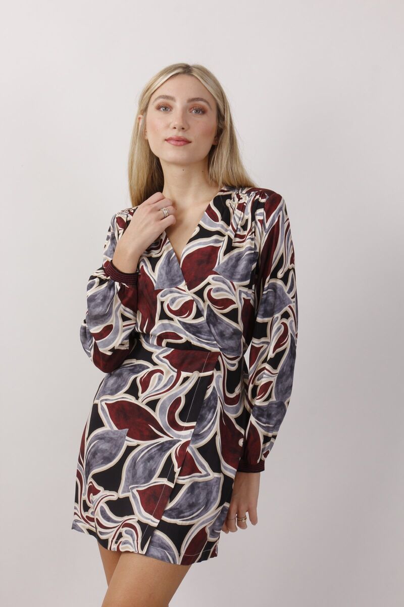 Mini abito incrociato fantasia con polsino.