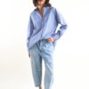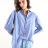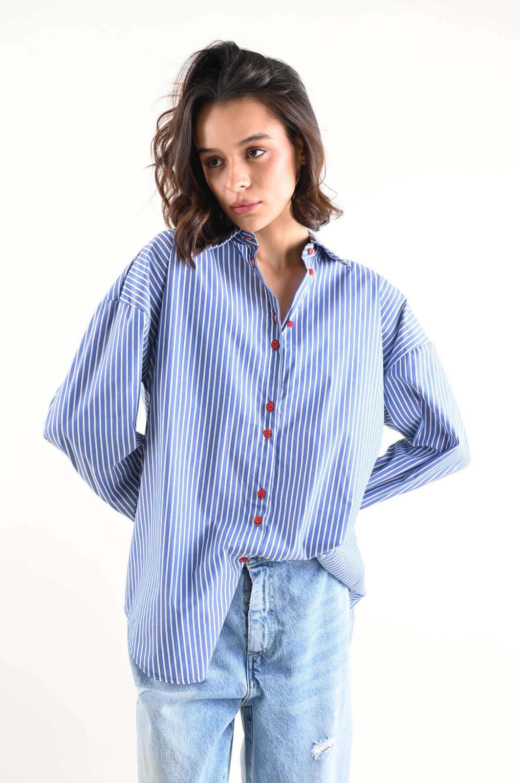 Camicia donna a righe con bottoni a contrasto, pensata per un look contemporaneo e versatile.