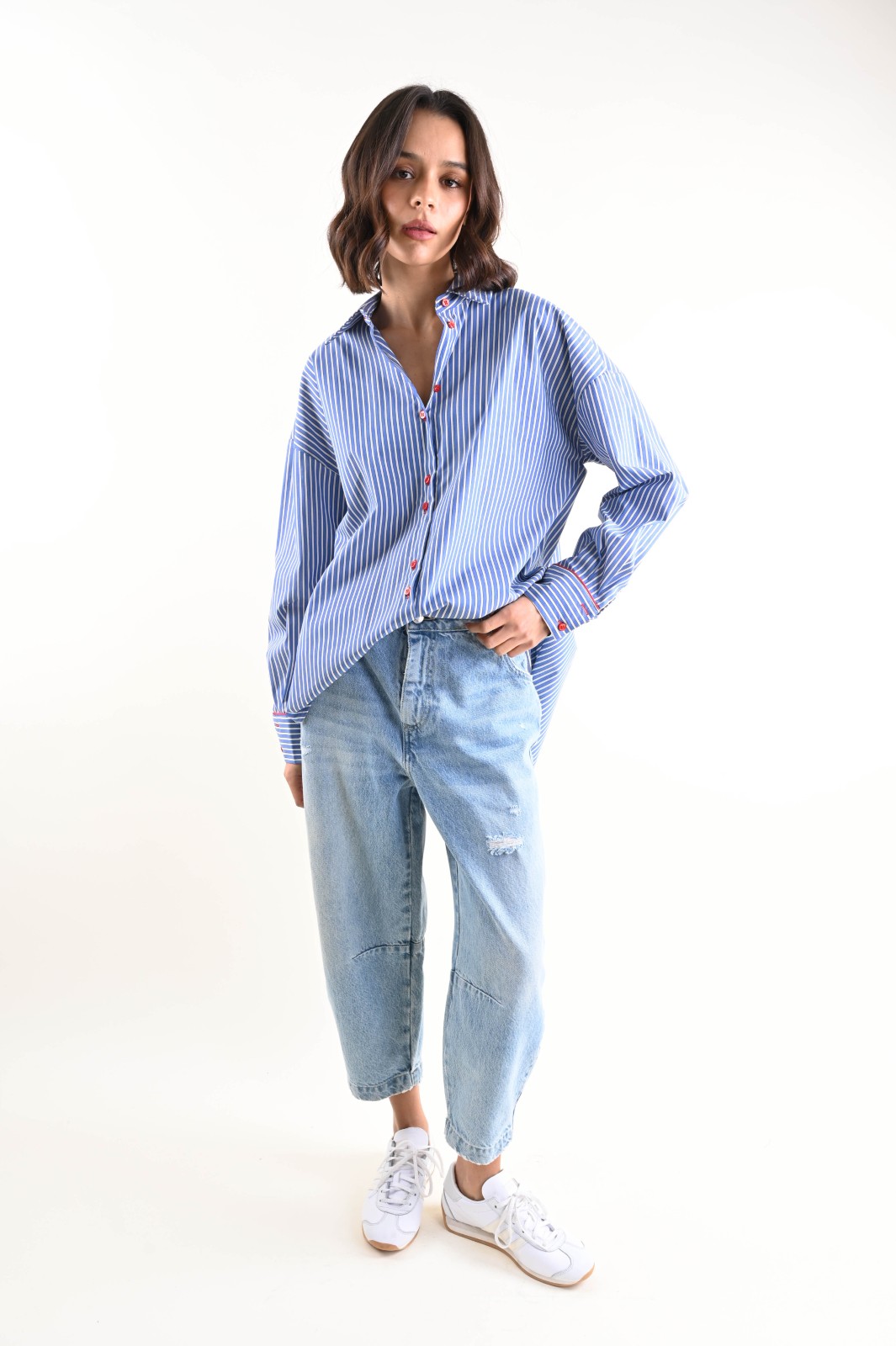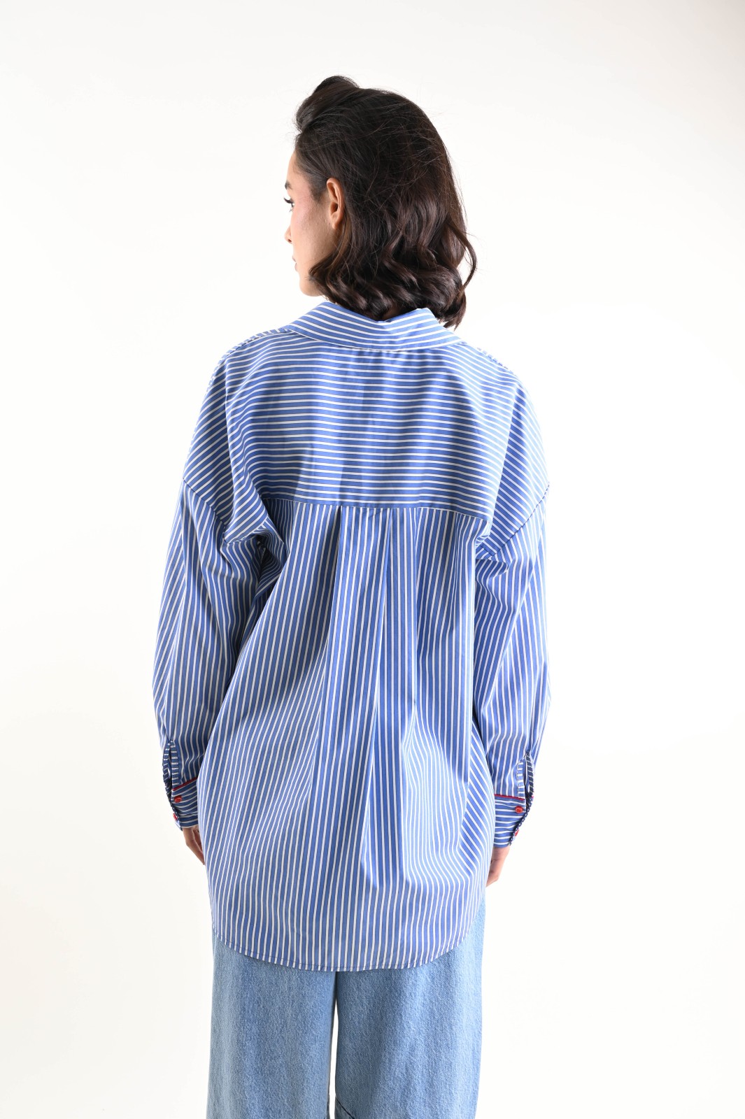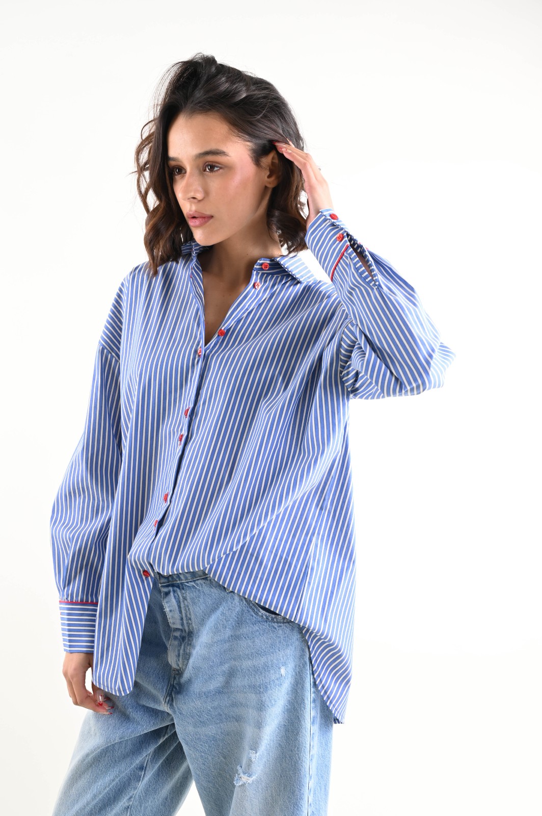CAMICIA A RIGHE CON BOTTONI A CONTRASTO