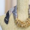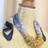 Scopri l’eleganza senza tempo della collana foulard con perline e pietre, un accessorio raffinato che unisce la morbidezza del tessuto foulard al fascino luminoso delle perline e delle pietre decorative. Perfetta per completare outfit casual chic o look eleganti, questa collana è un dettaglio versatile che valorizza il décolleté con stile.