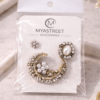 Set composto da 3 spille gioiello con perle decorative e dettagli luminosi, perfette per impreziosire abiti, blazer, maglieria e camicie. Il design raffinato unisce una spilla a forma di mezzaluna riccamente decorata, una spilla tonda con perla centrale e una mini spilla floreale coordinata, creando un mix armonioso e femminile.