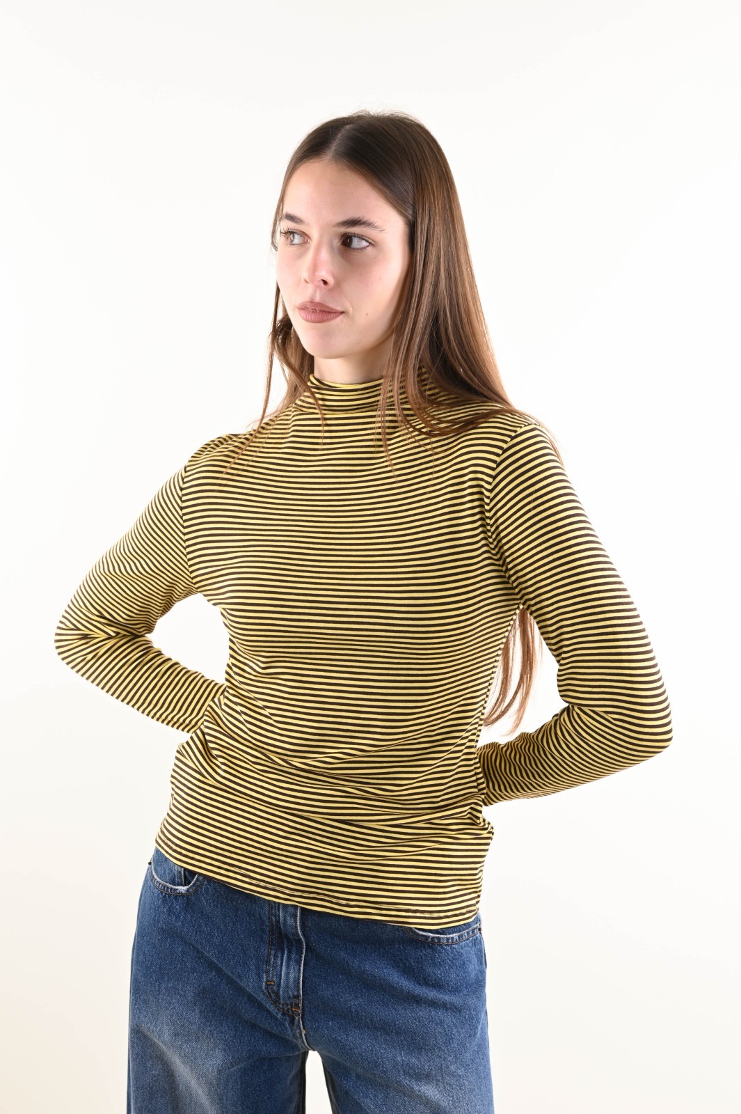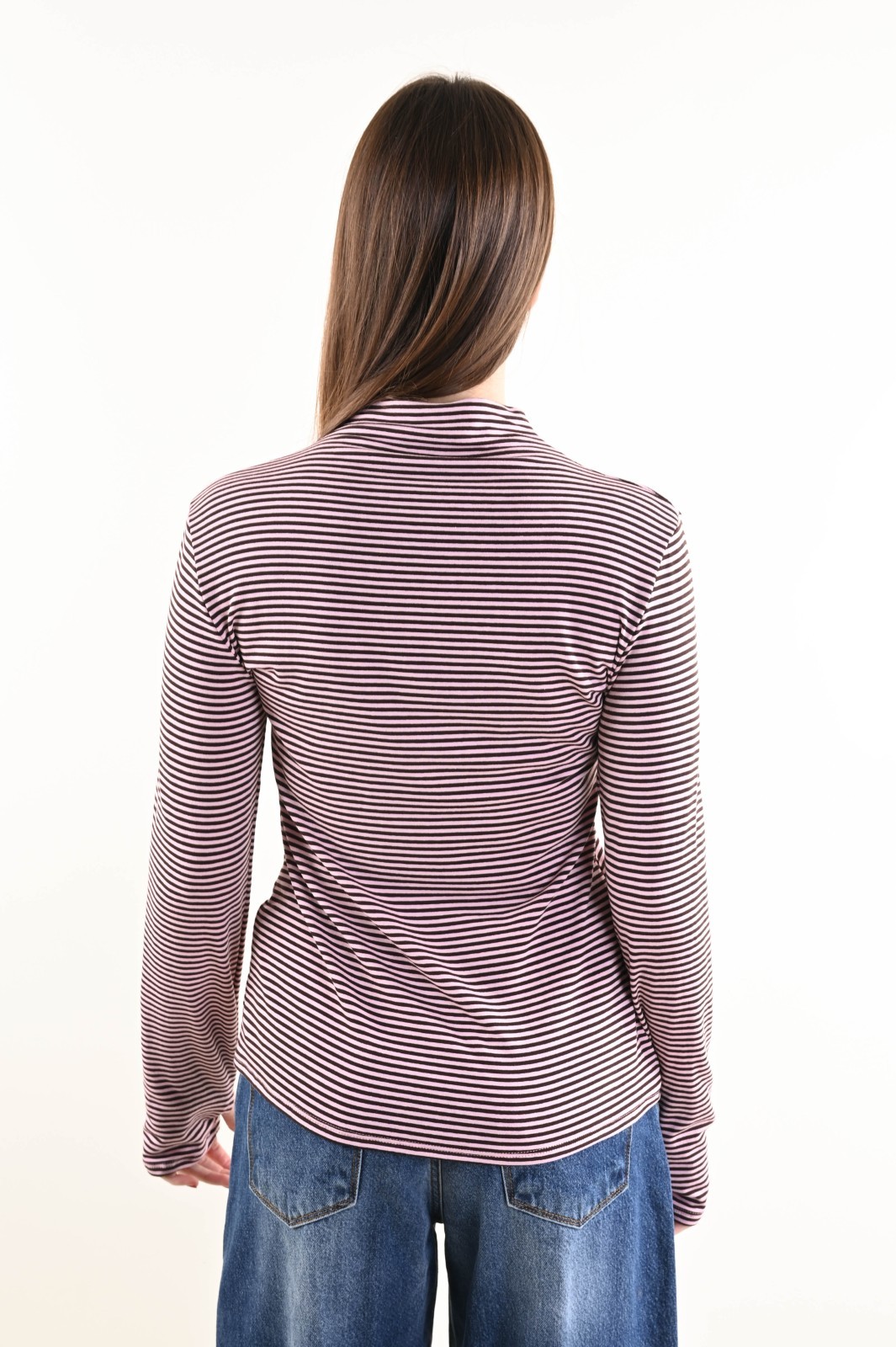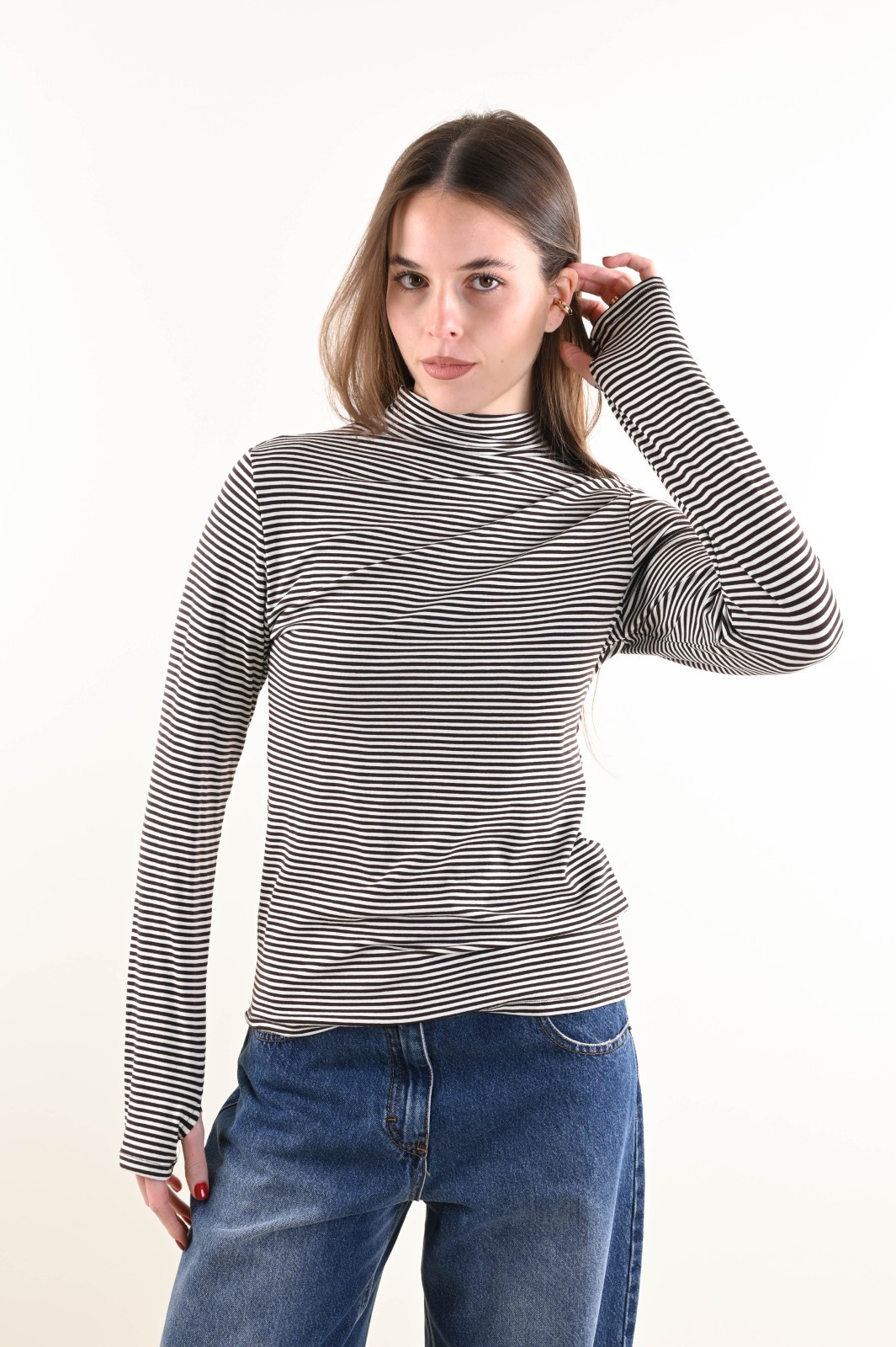 MAGLIA A RIGHE FELPATA CON COLLO ALTO